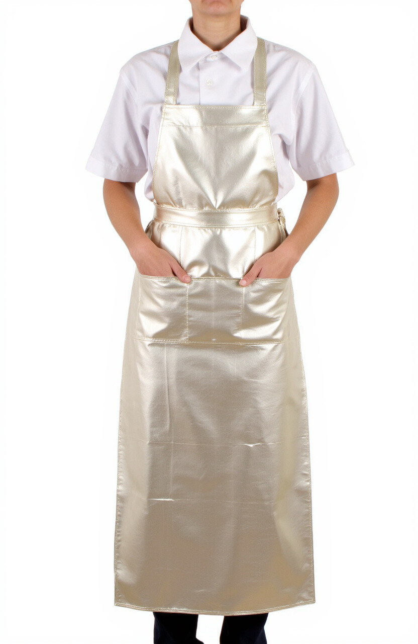 Metallic aprons are often made from a blend of fabrics to ensure durability and comfort. They’re usually available in silver, gold, or rose gold hues. Expect to pay between $30 and $60.