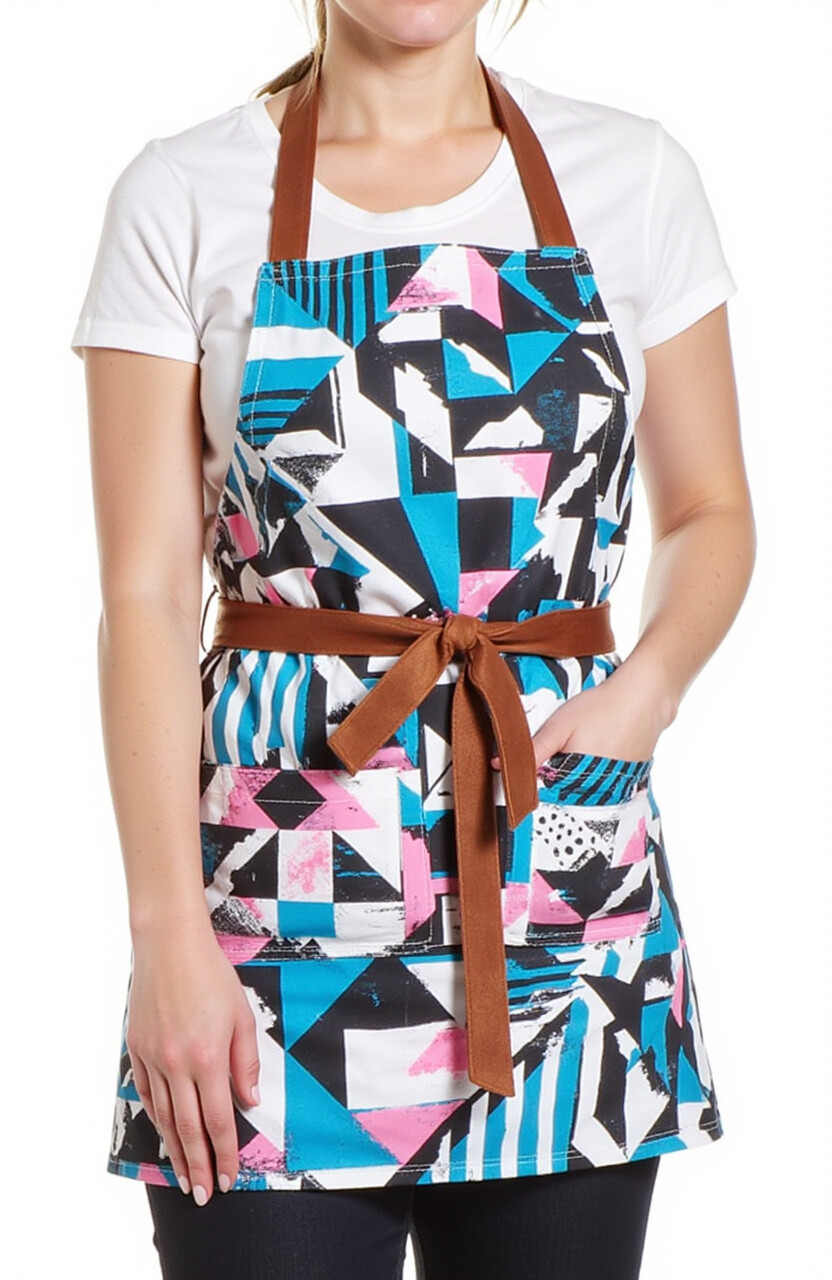 Make a statement with an apron featuring bold geometric patterns. It’s a great way to express your personality and add a modern touch to your cooking attire. Perfect for the fashion-forward chef.