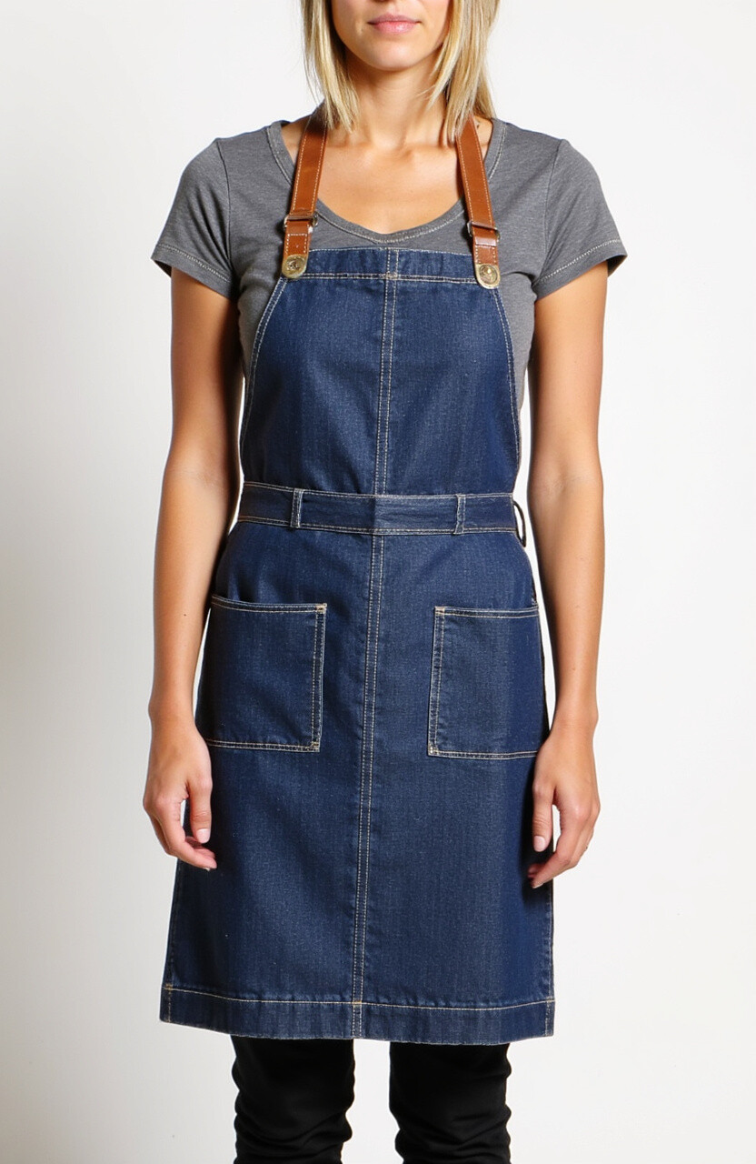2. Denim Apron with Leather Straps
