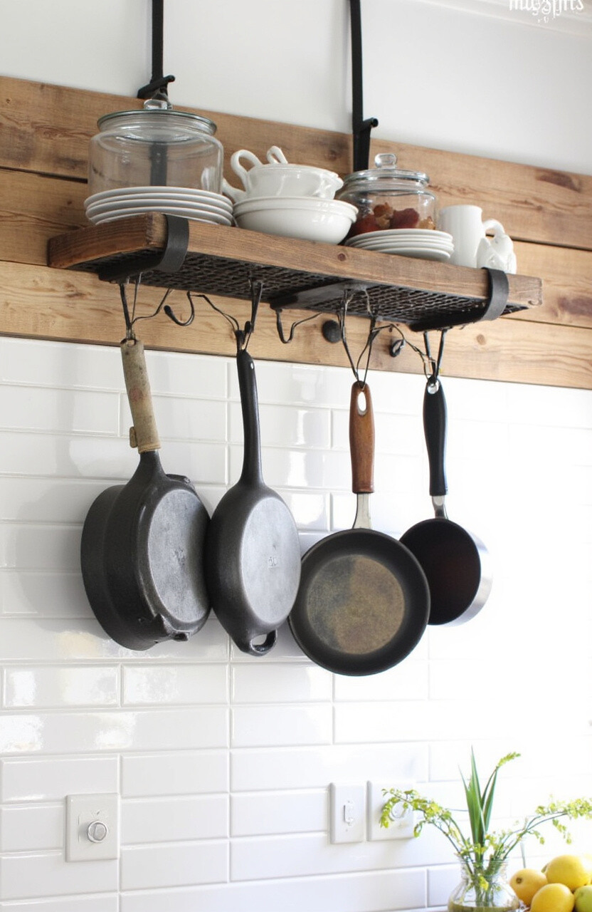 A rustic pot rack is a practical and stylish addition, offering storage and display for your cookware. It keeps your pots and pans within easy reach.