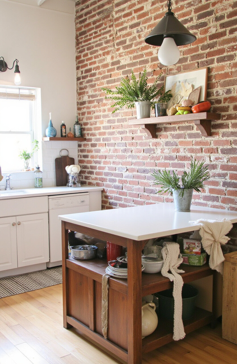 Brick walls are durable and low-maintenance, making them a practical choice for busy kitchens. They add an industrial edge that contrasts nicely with softer elements.