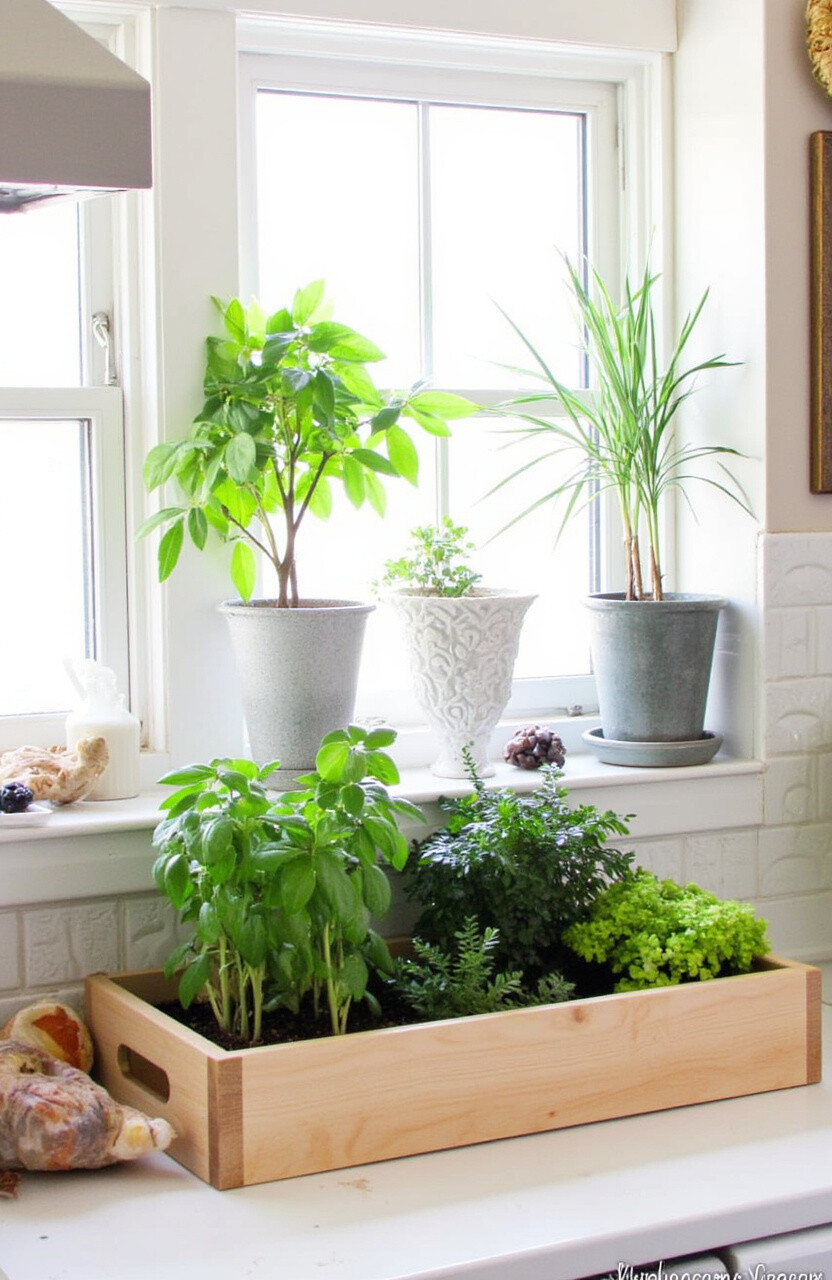 An indoor herb garden brings the freshness of the outdoors into your kitchen. Plant herbs in small pots or a dedicated planter box.