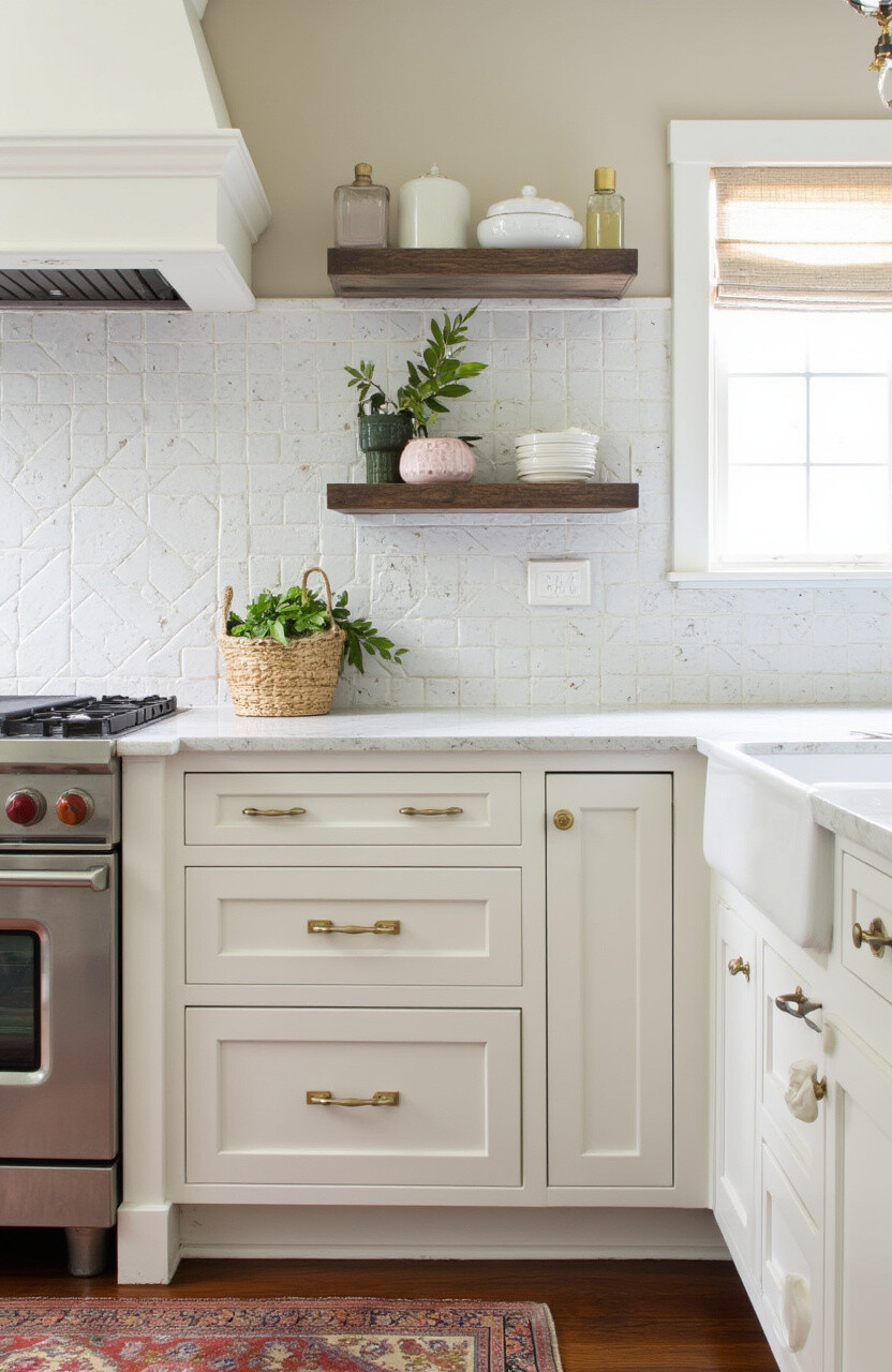 Floating shelves, especially in a rustic wood finish, can add warmth and character. They allow you to personalize your kitchen with favorite pieces and seasonal decor.