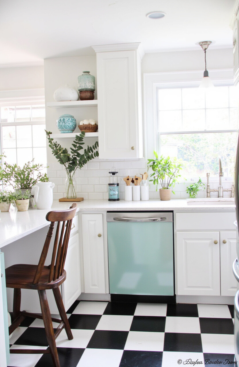 Checkerboard flooring is a classic choice that adds visual interest and a retro vibe to the kitchen. Choose contrasting colors like black and white, or softer tones for a subtler look.