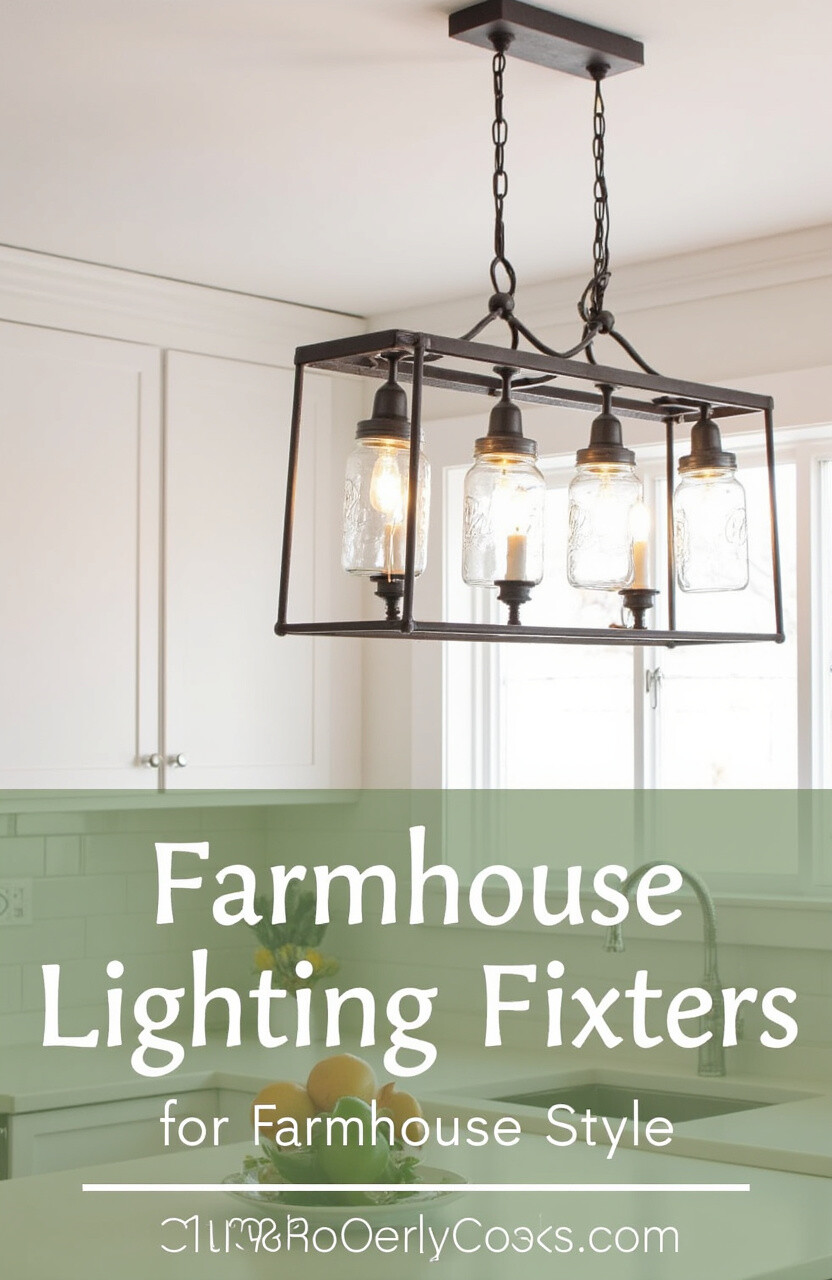 Lighting can define the mood of a kitchen, and farmhouse lighting fixtures offer rustic charm. Think pendant lamps with mason jar shades or wrought iron chandeliers.