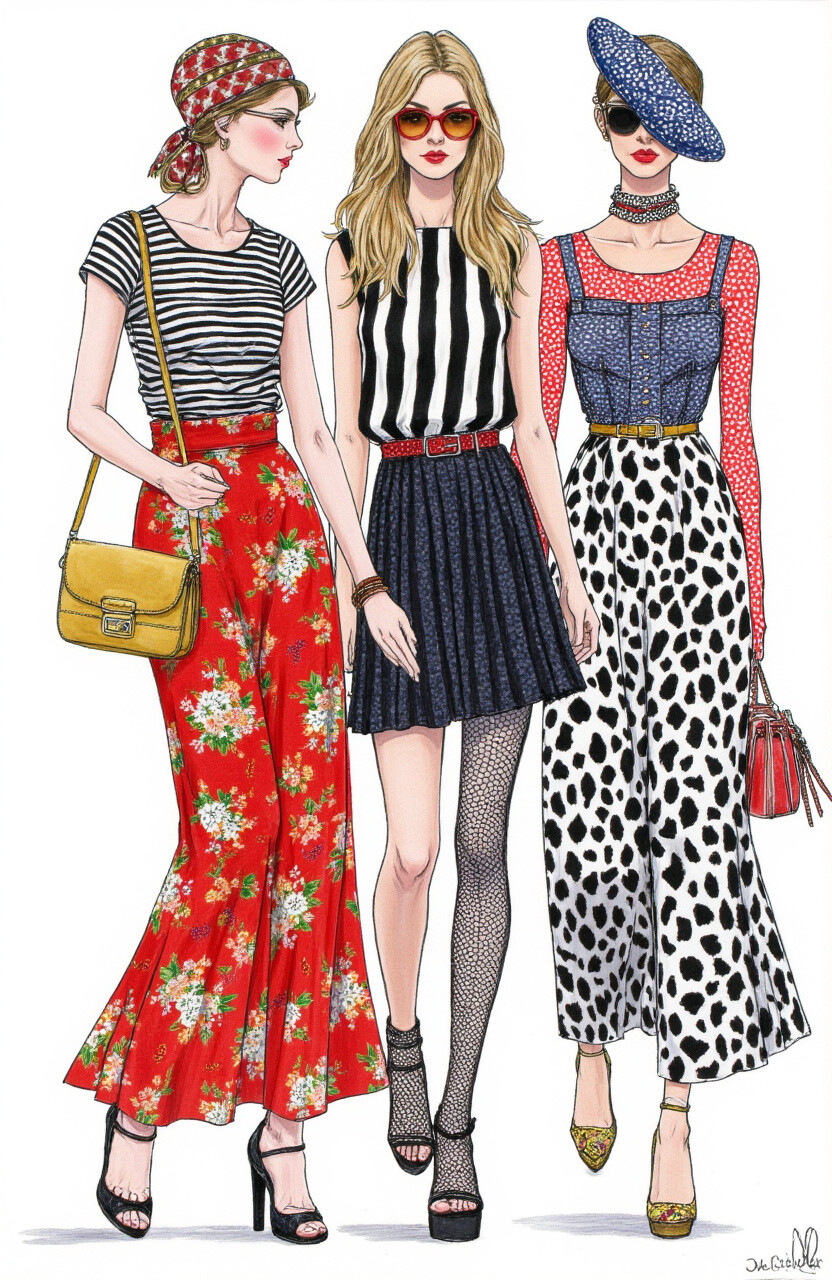 Mixing patterns is like a fashion puzzle. Stripes with florals, checks with polka dots—it’s daring and exciting. It’s all about balance.