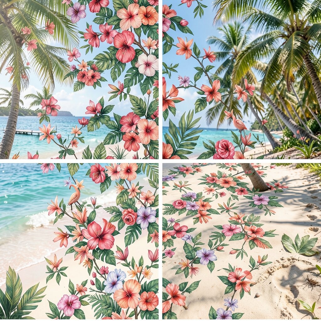 Transport yourself to a tropical getaway with this vibrant pattern. Tropical Paradise is full of bold colors and exotic flowers, ideal for a lively, upbeat look.