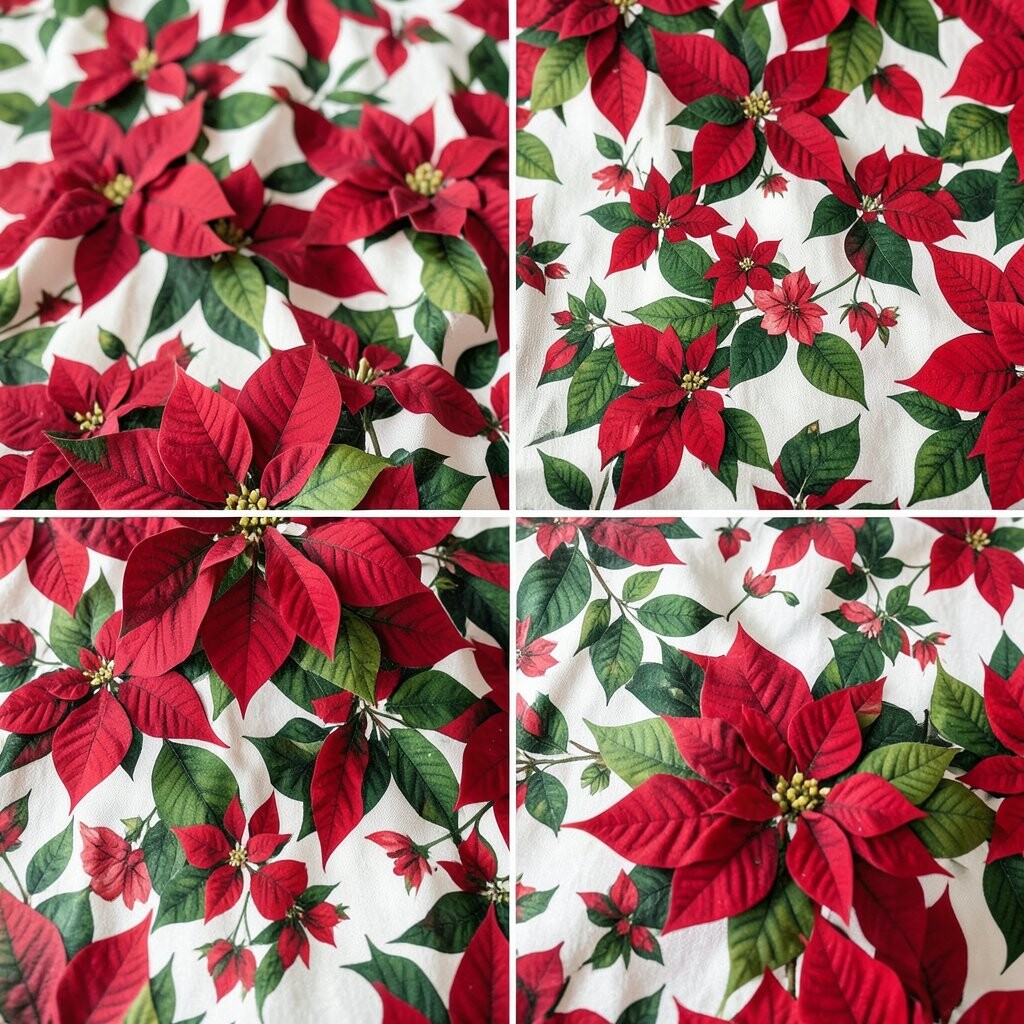 Poinsettia Perfection is all about festive charm and elegance. Its rich reds and greens are perfect for holiday decor or winter fashion.