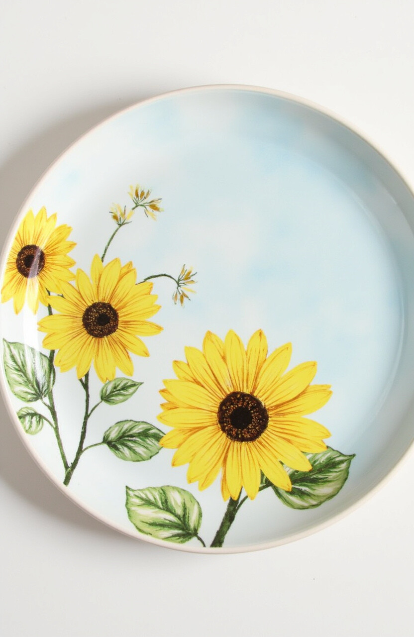 Bring sunshine into your home with the cheerful Sunflower Field Plate. Its bright yellow blooms on a sky-blue background are sure to lift anyone’s spirits.