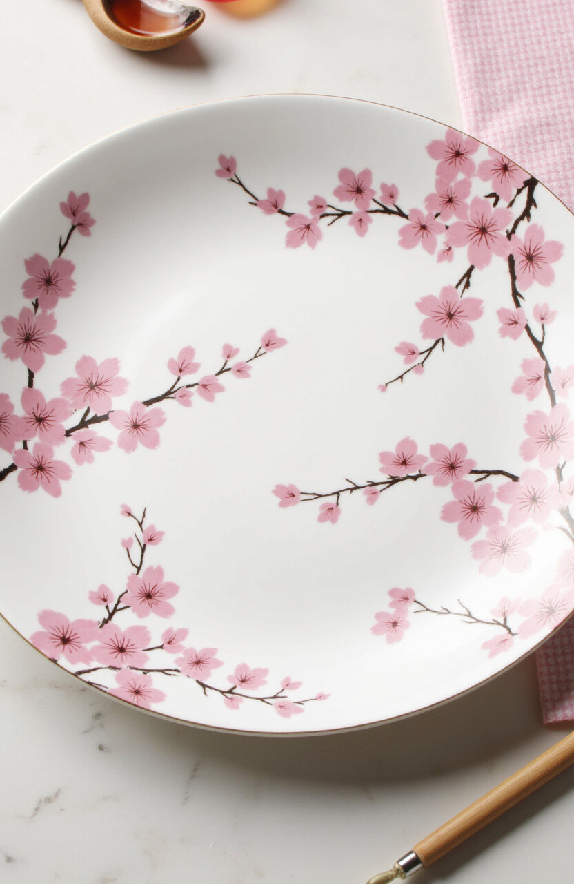 Experience the serene beauty of Japan’s cherry blossoms with this exquisite plate. Its delicate pink flowers on a white background are simple yet striking, capturing the essence of springtime elegance.