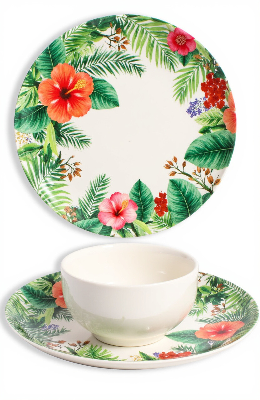 Bring the vacation vibes to your dining room with the Tropical Paradise Plate. Bursting with bright hibiscus flowers and lush greenery, it feels like a mini escape to a sunny beach.