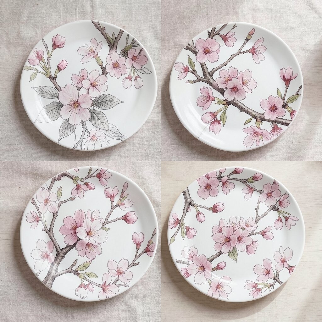 Cherry blossom sketch plates offer a minimalist yet elegant design. The simple sketches capture the beauty of cherry blossoms in a sophisticated way.