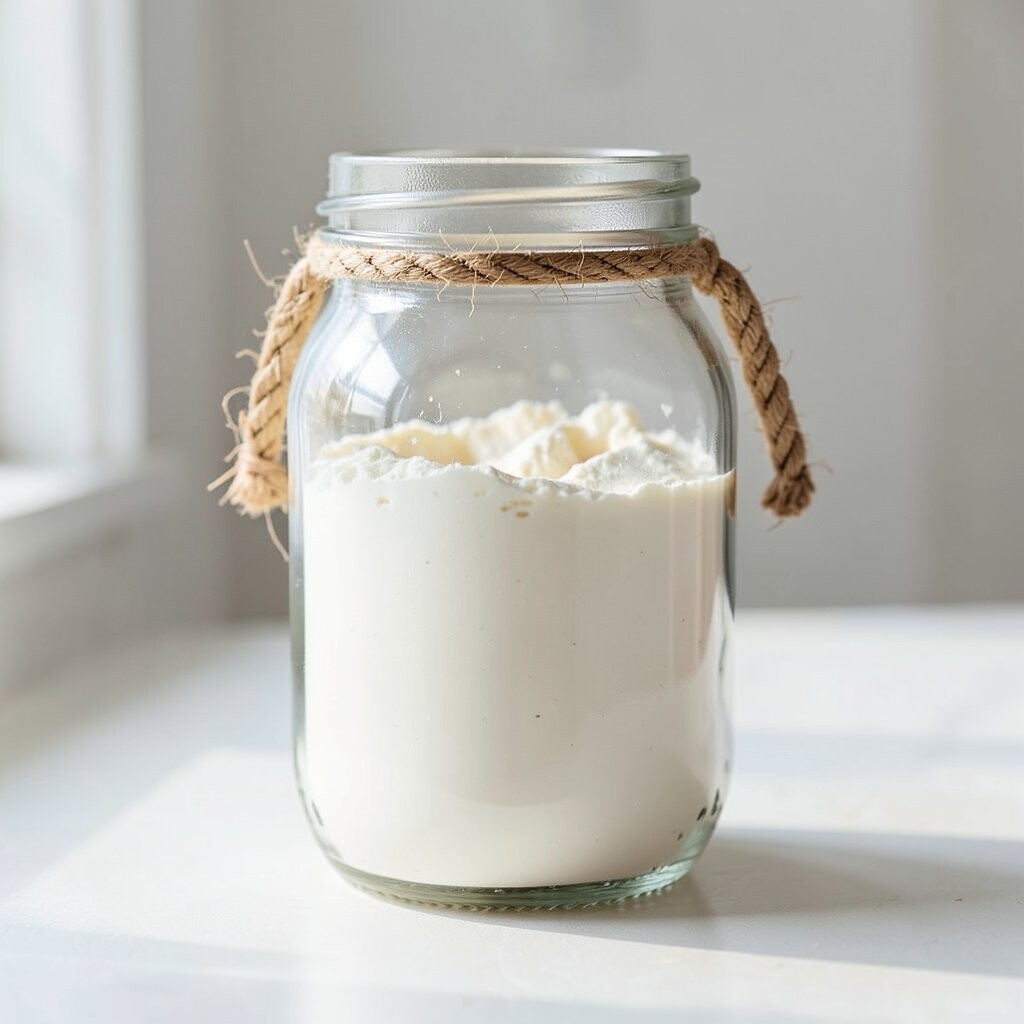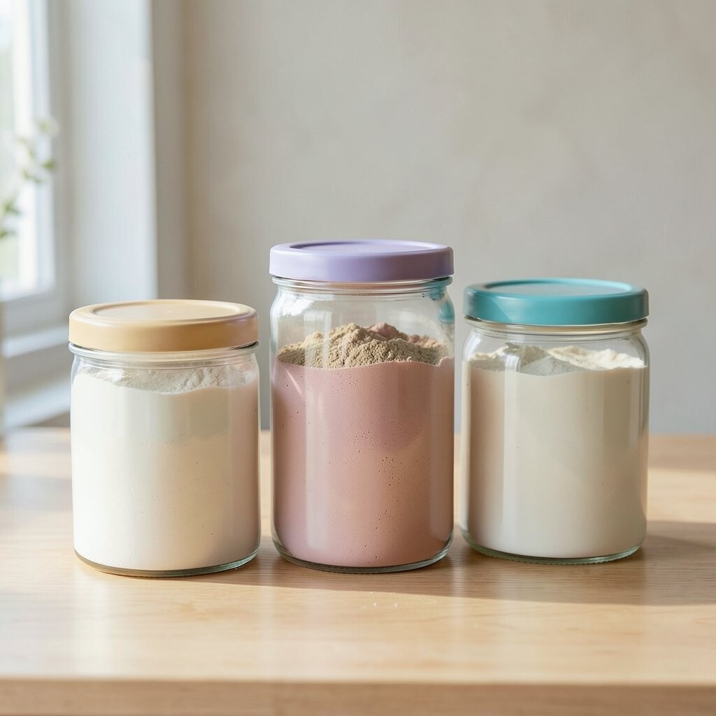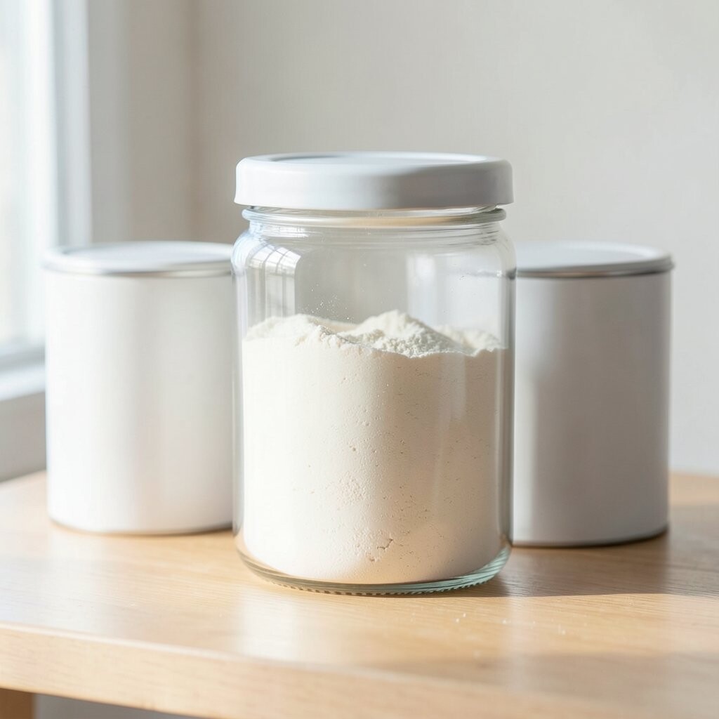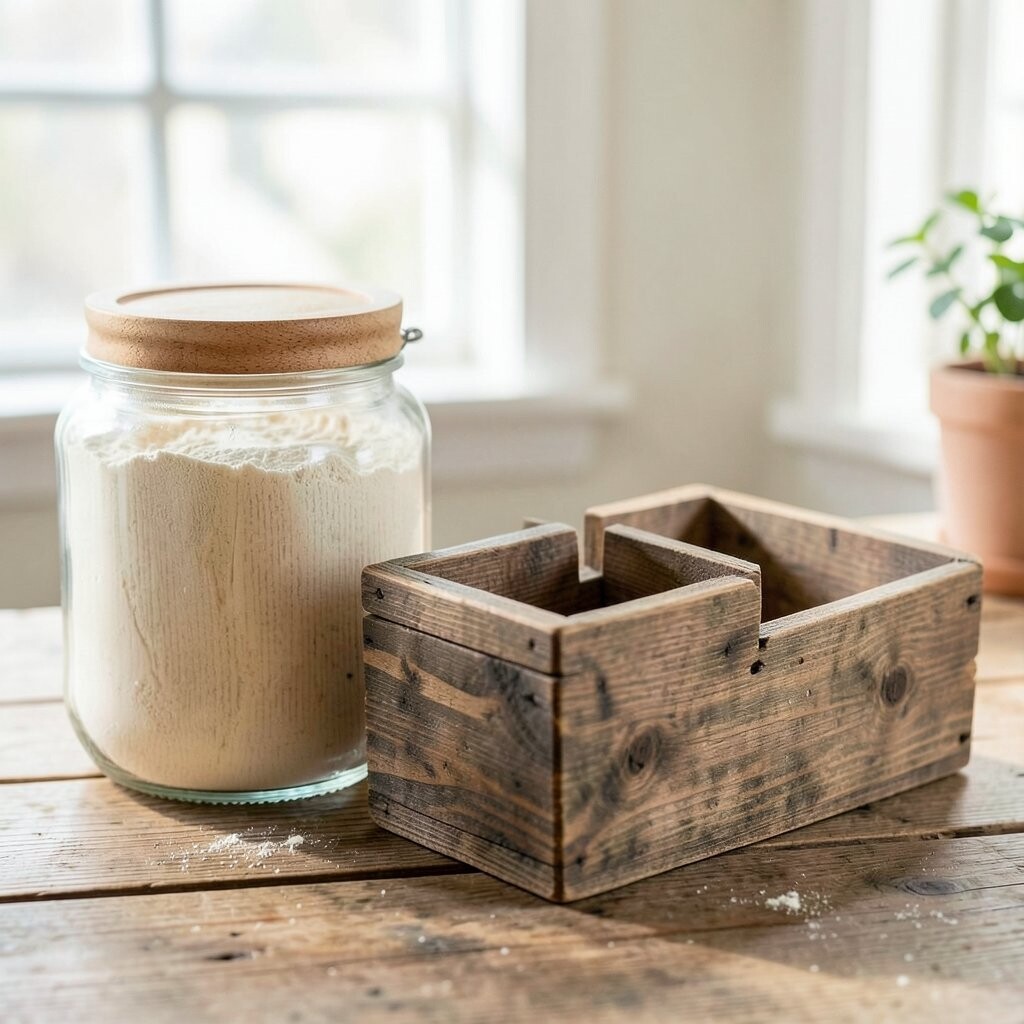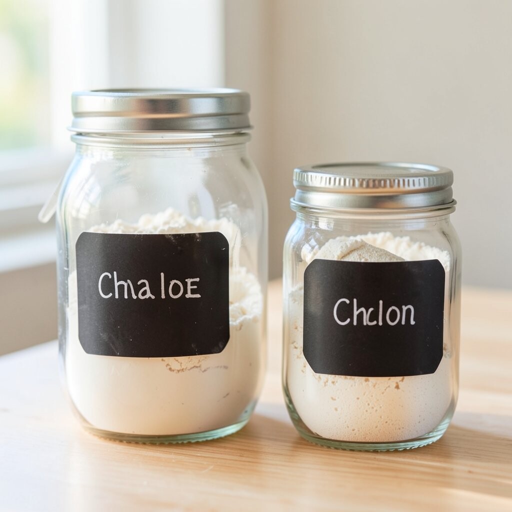 Vintage Glass Jars Imagine stepping into a cozy, old-world kitchen with vintage glass jars lining your shelves. These jars are clear, showing off the soft, powdery white of flour inside. They remind you of Grandma’s kitchen, filled with warmth and love.