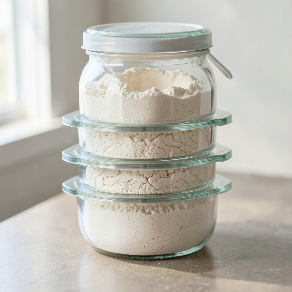 Glass Jars with Metal Clips Glass jars with metal clips add a touch of industrial style. They’re sturdy and keep your flour safe from moisture. The metal clips offer a nice contrast to the clear glass.