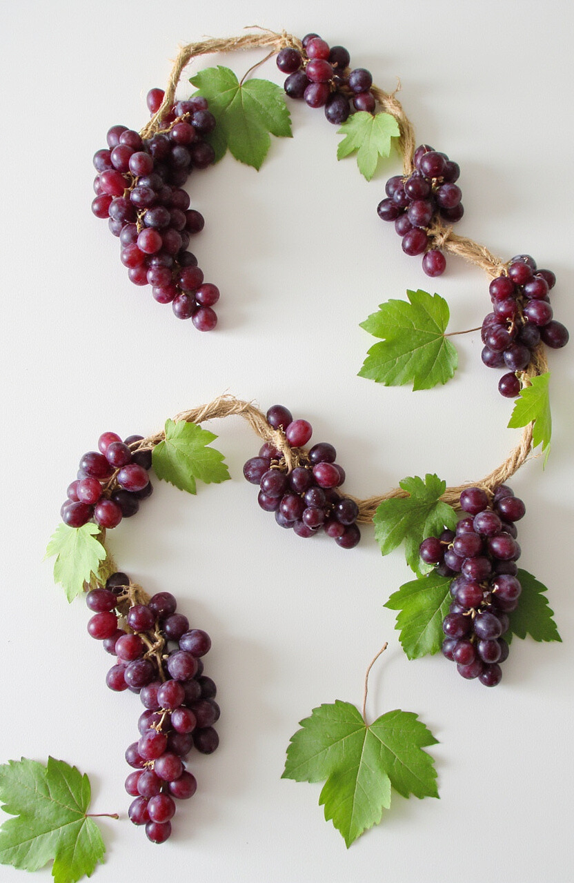 Create elegant and charming garlands using bunches of grapes. String them together with twine for a lush, natural look.