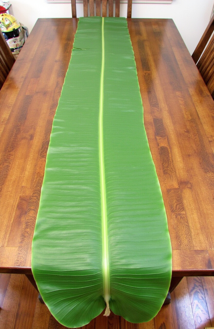 Banana leaves can be used as an exotic and eco-friendly table runner. Lay them across the table for a natural and tropical look.