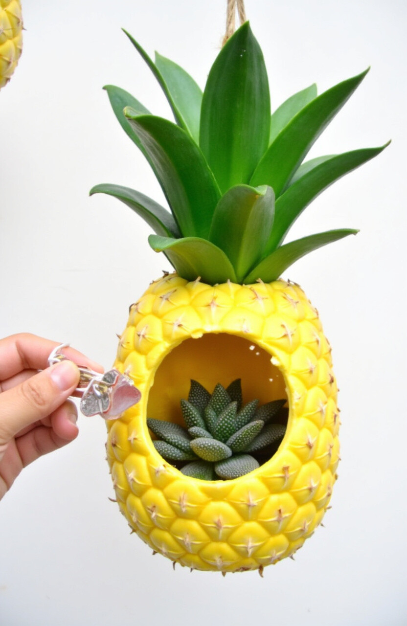 Pineapples aren’t just for eating; they can be converted into unique hanging planters. Hollow out a pineapple and use it as a pot for small plants or succulents.