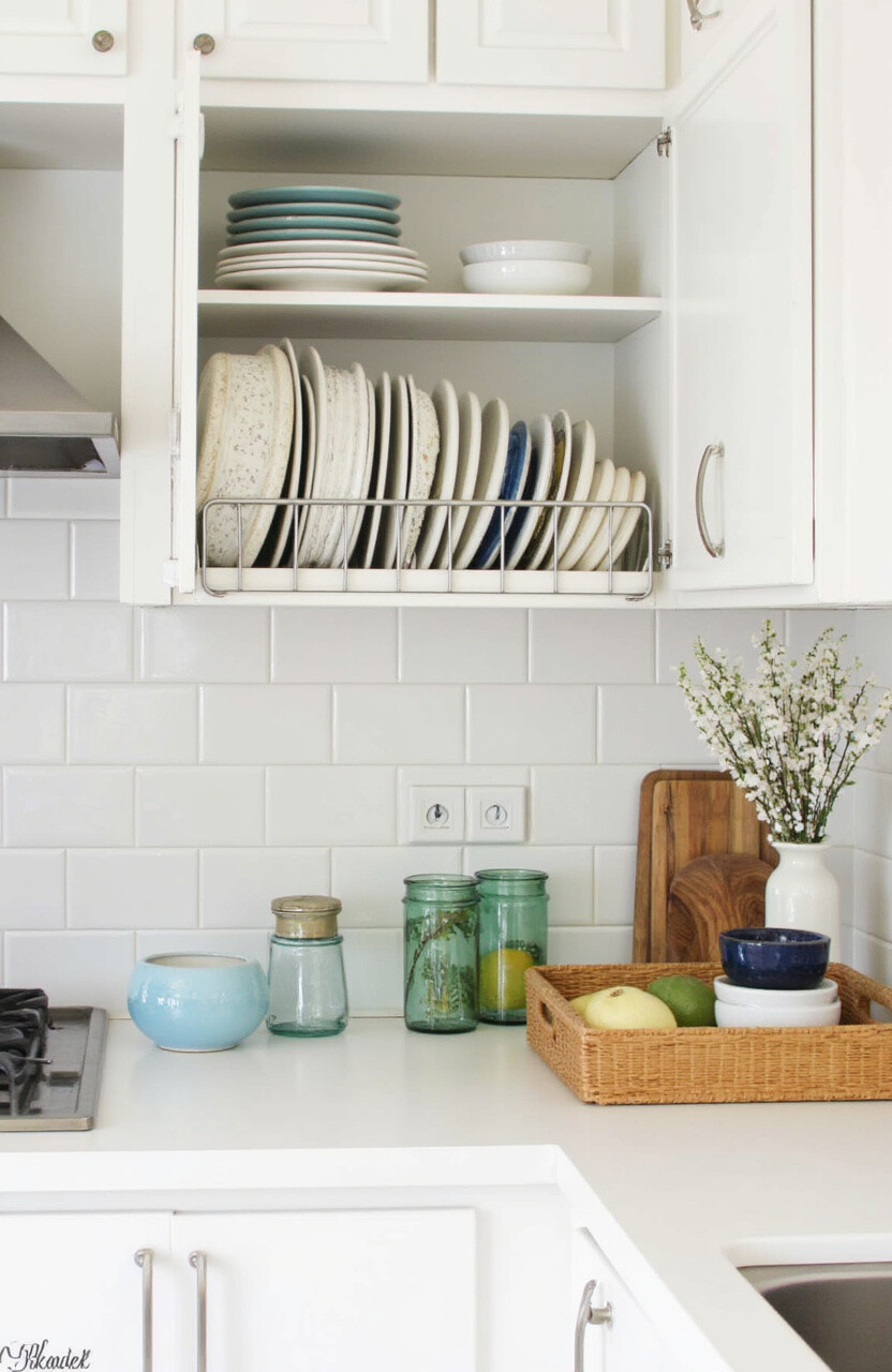 This method is not only unique but also protects your plates from chips and scratches. It’s a game-changer for small kitchens with limited cabinet space.