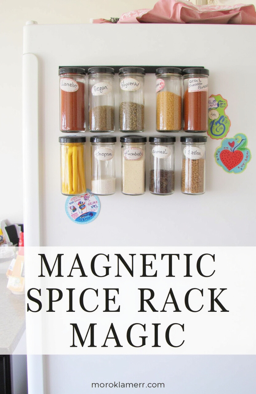 Magnetic spice racks are affordable and easy to install. You can personalize them by labeling each jar with cute stickers or colorful markers.