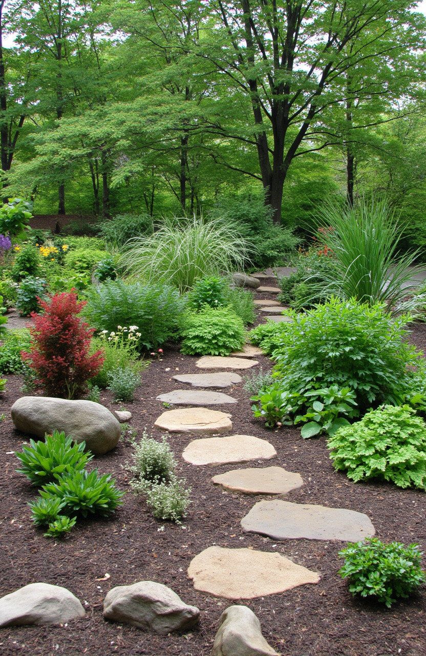 A Zen garden with raked sand patterns soothes the soul. Add a small water feature for gentle sounds.