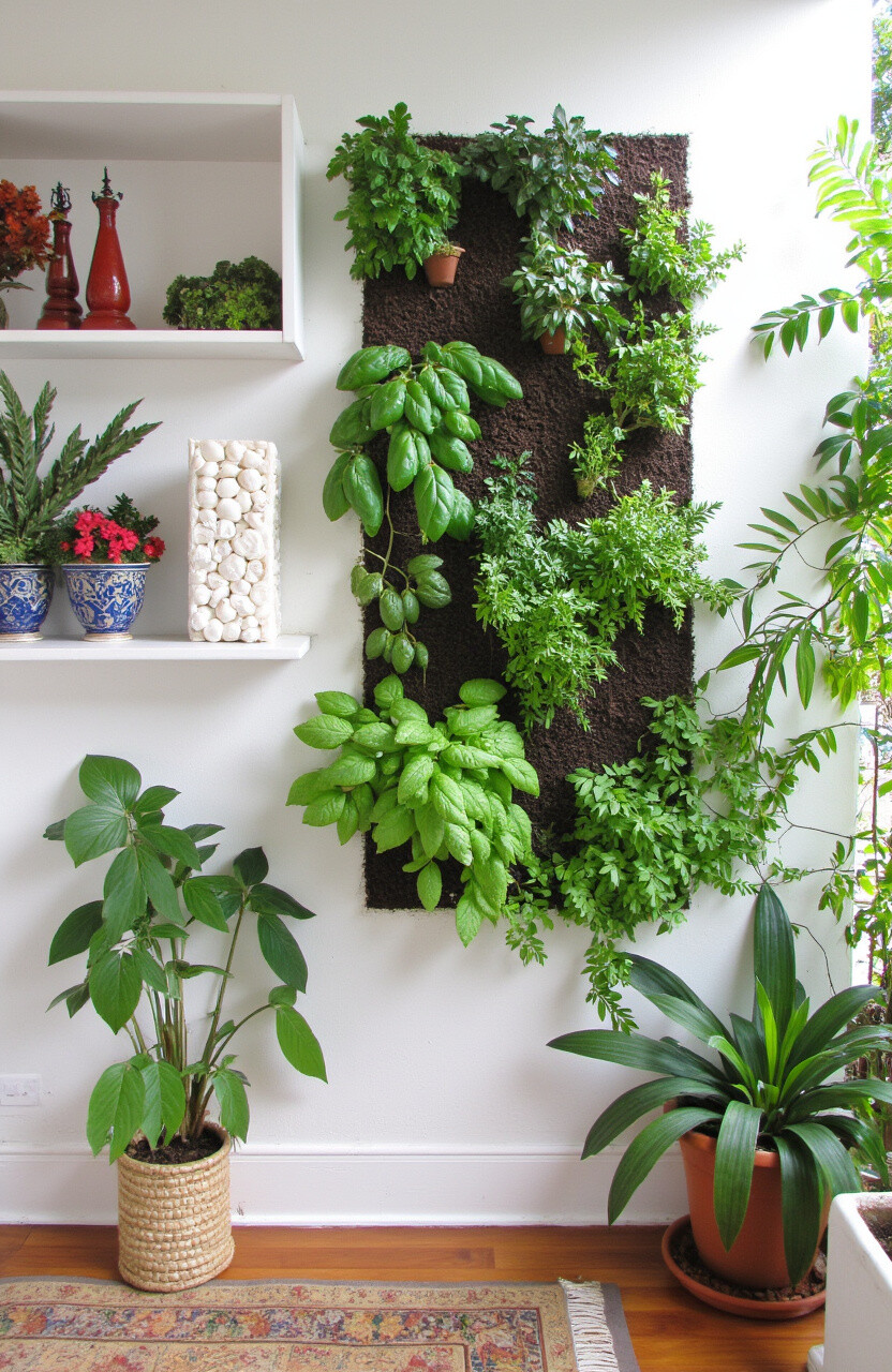Vertical gardens save space and provide fresh herbs for cooking. Imagine reaching out to pick basil or mint!