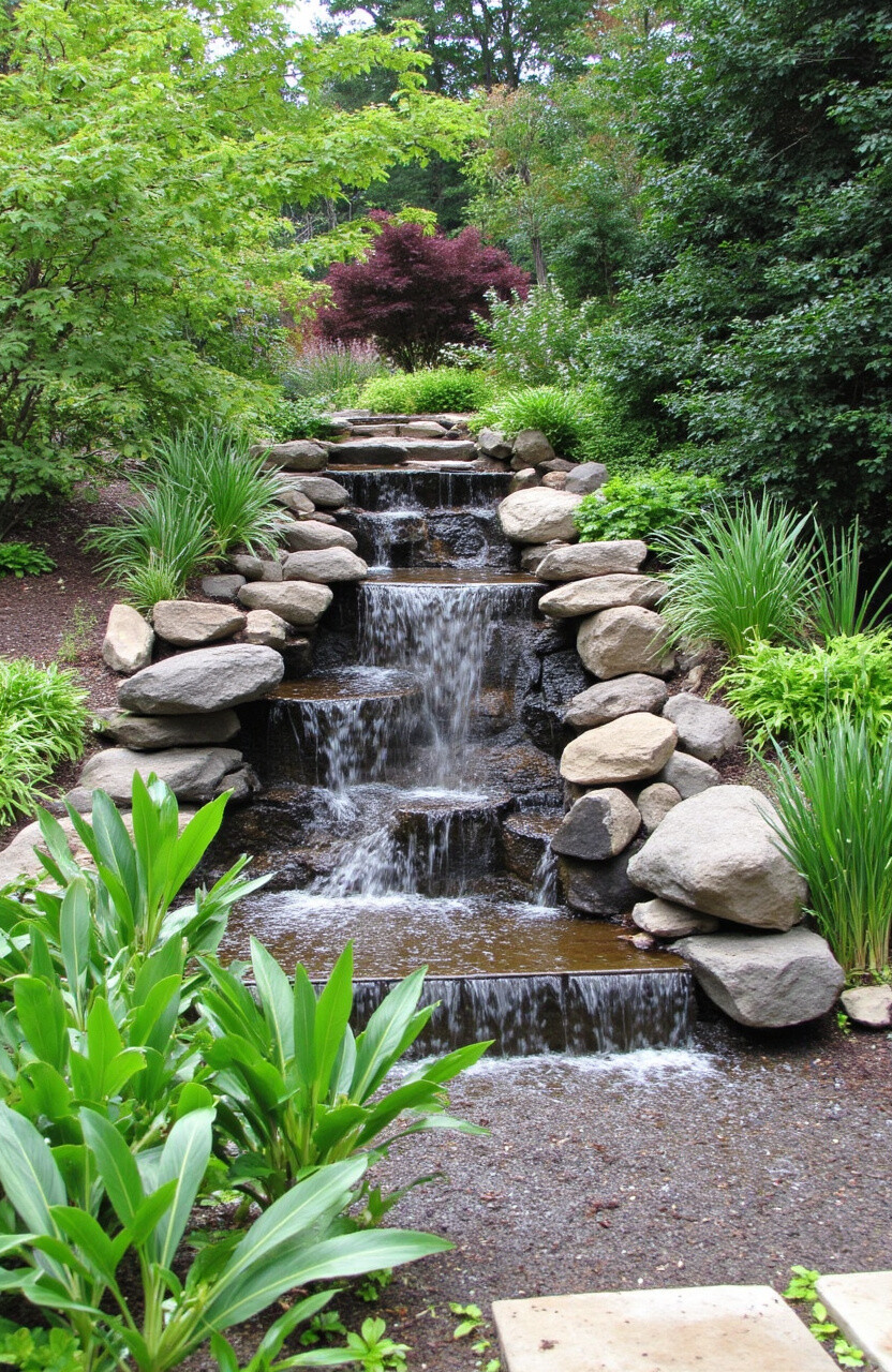 Install a small waterfall for soothing sounds. Surrounded by lush greenery, it’s a slice of paradise.