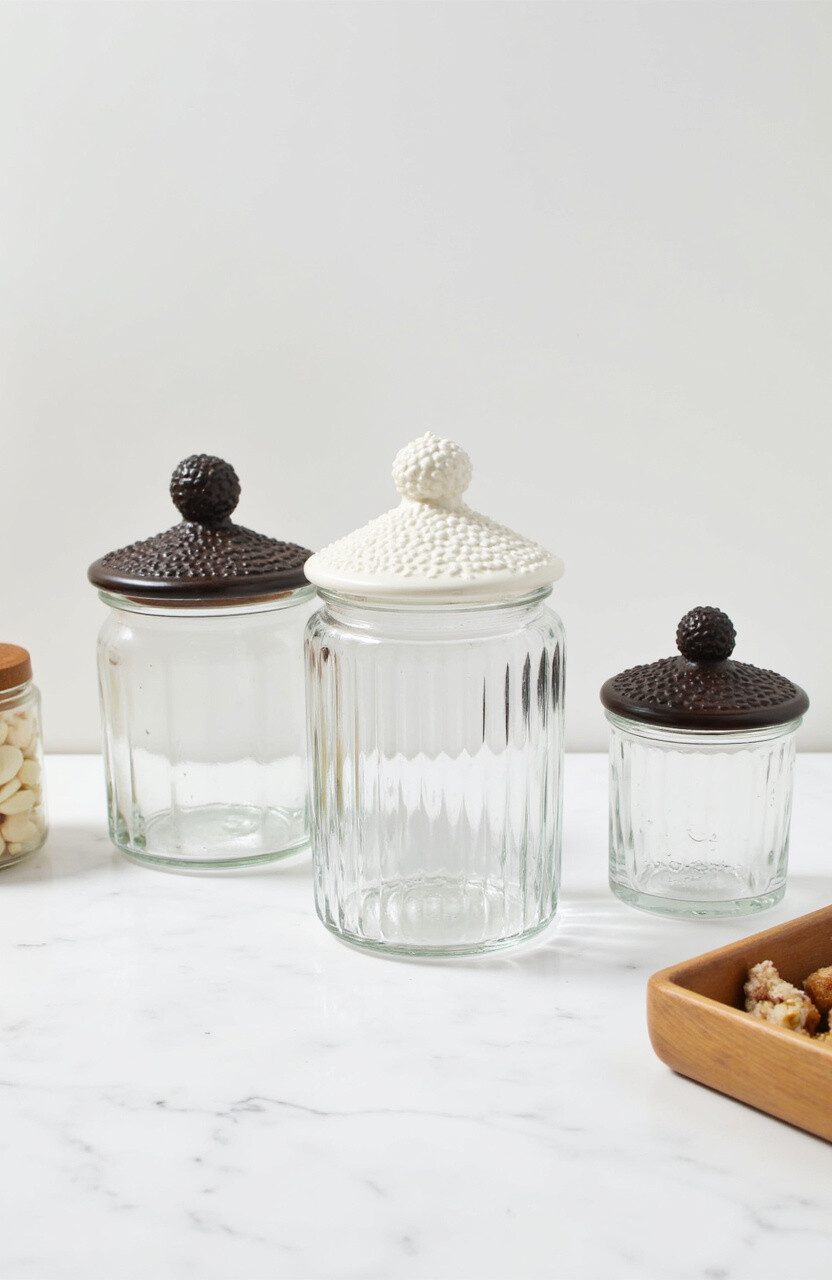31. Glass Canisters with Decorative Knobs