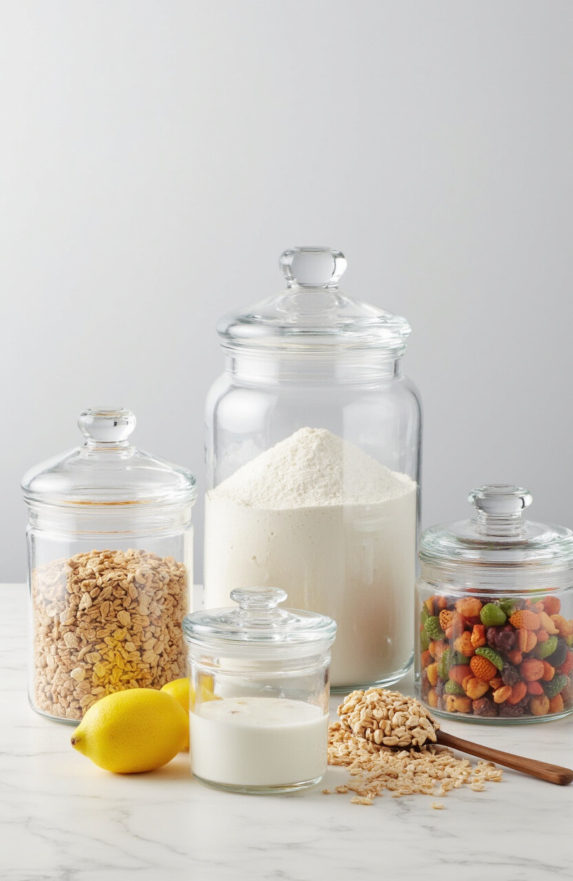 For those with big storage needs, large glass canisters are the answer. They’re perfect for flour, cereals, or pet food.