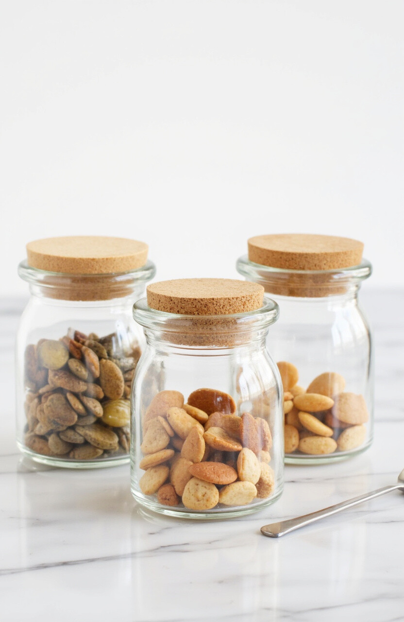 Mini glass canisters are perfect for spices or small snacks. Their compact size makes them easy to store and display.