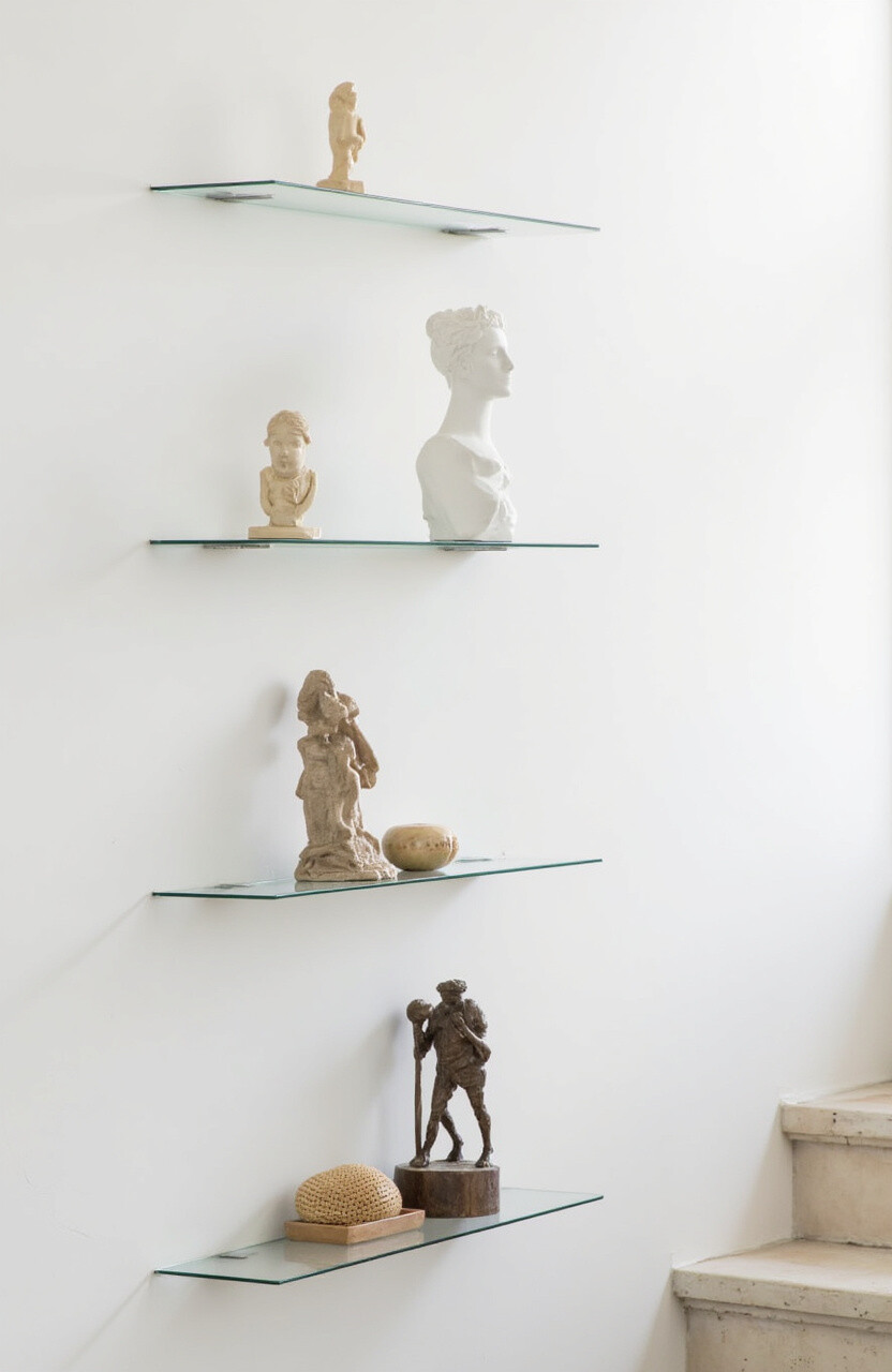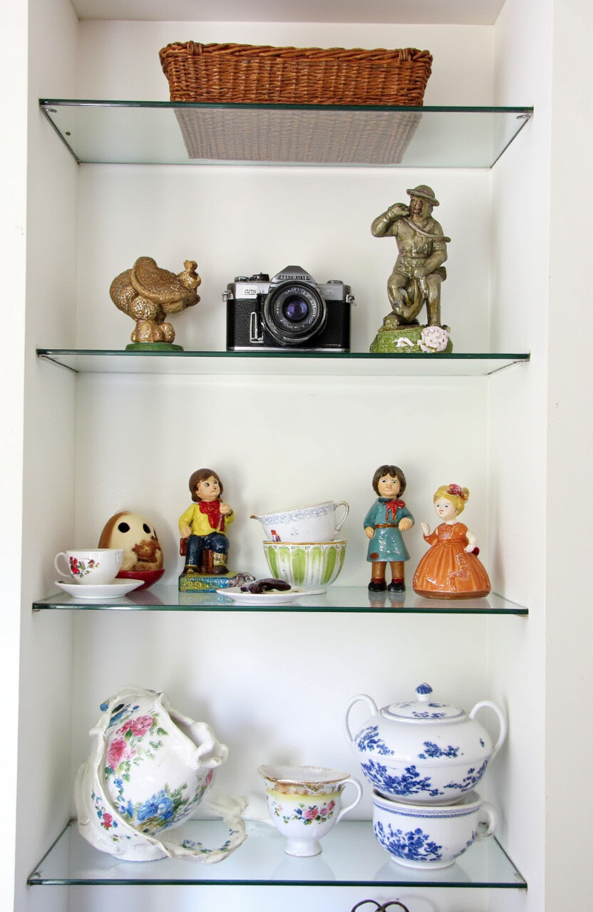 Have some vintage treasures? Glass shelves are perfect for showing them off. The transparency highlights each piece without overshadowing its charm.