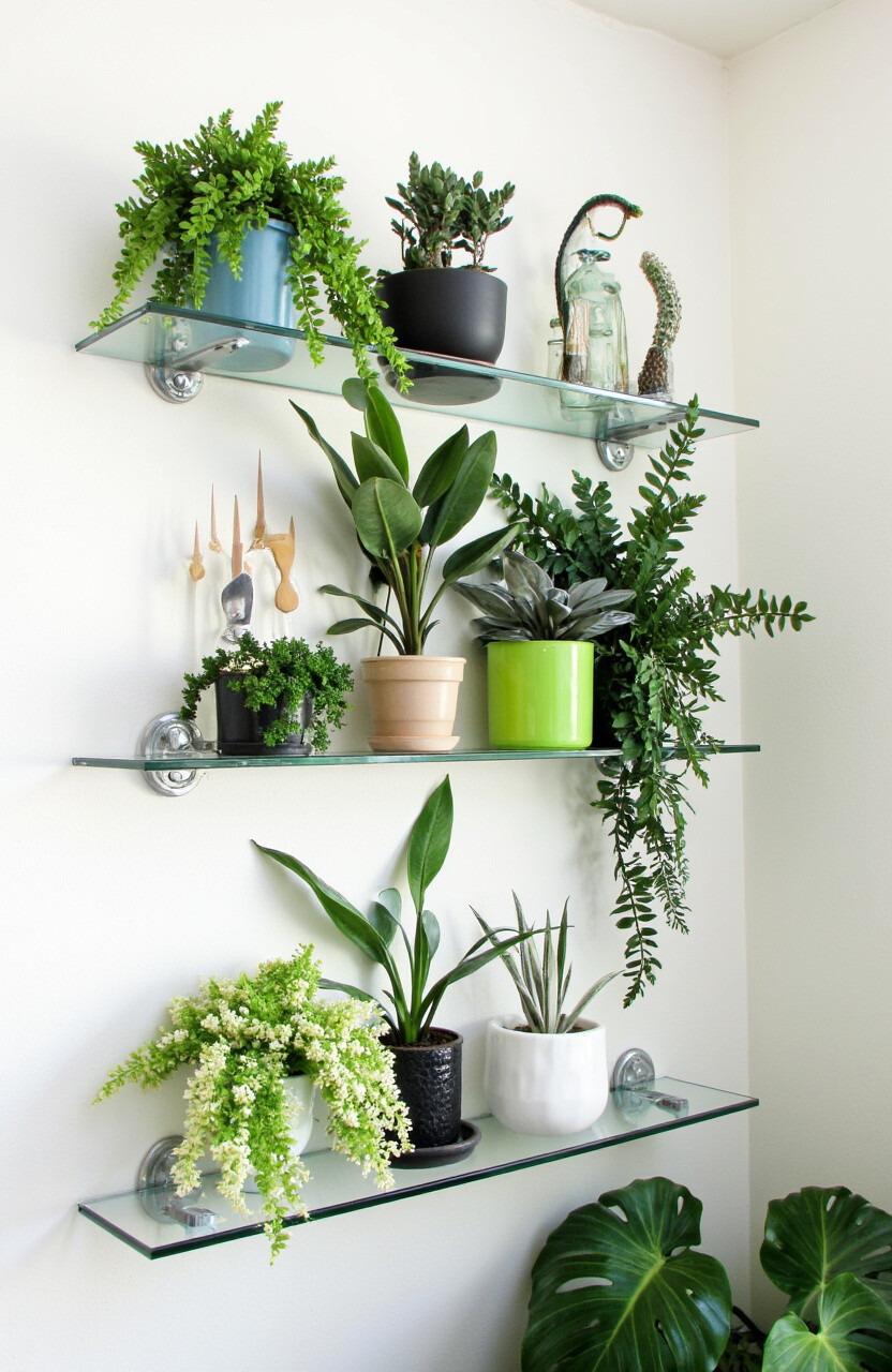Plants bring life and a pop of color to any room. They’re not only beautiful but also purify the air. Whether it’s succulents or ferns, your green collection will thrive on those shelves, making your home feel like a peaceful retreat.