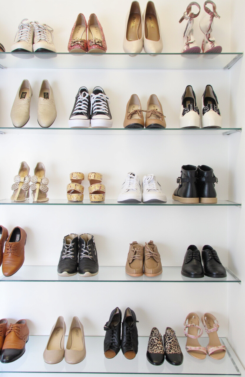 Are you a shoe lover? Show off your collection on glass shelves. From sneakers to heels, let your shoes be the star of the show.