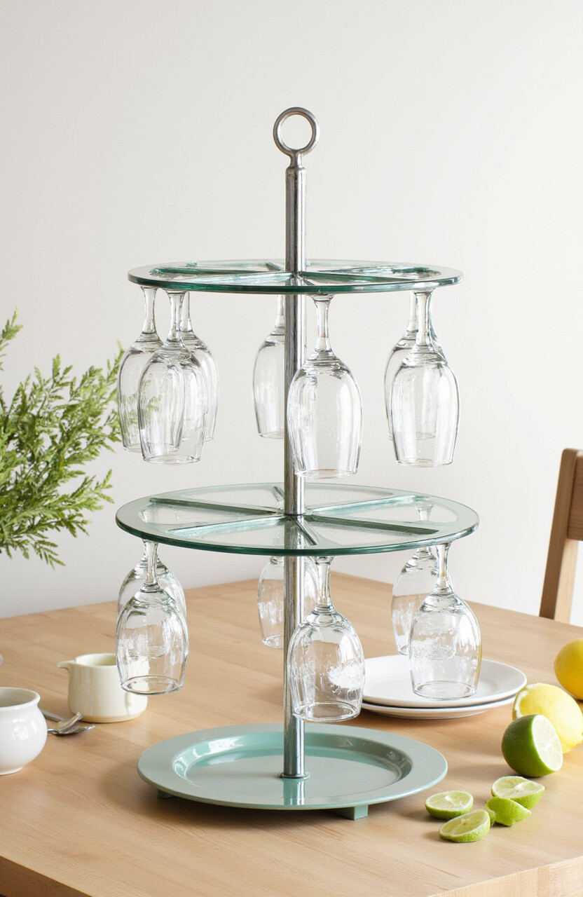 Use a rotating stand to display your glassware collection. This allows easy access and a 360-degree view of each piece. It’s perfect for tables or countertops where space is limited.