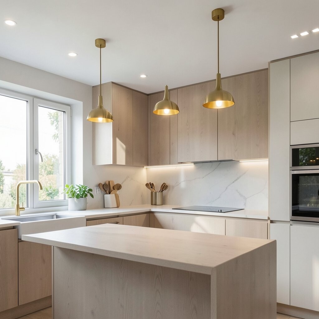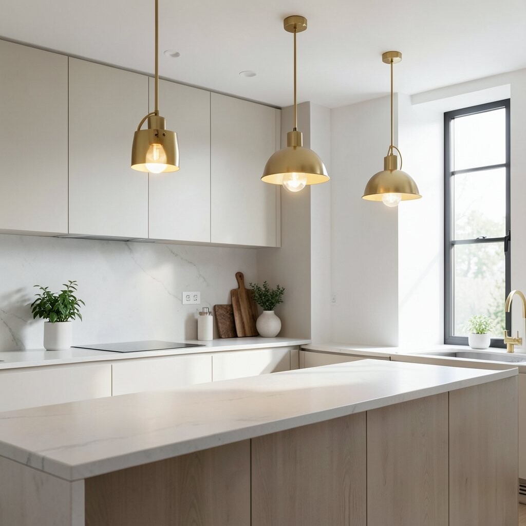 Imagine stepping into a kitchen where every light sparkles like the first star of evening. The warm glow of gold, perfectly paired with minimalist designs, creates an atmosphere that’s both inviting and chic. This curated list will take you on a journey through some of the most enchanting lighting ideas, where simplicity meets opulence.