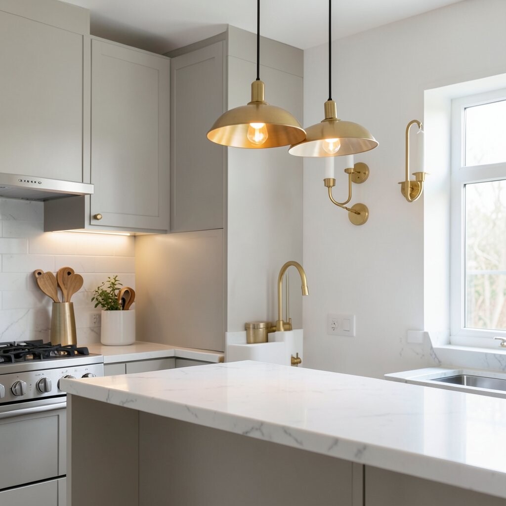 Vintage gold wall sconces are perfect for adding a nostalgic touch to your kitchen. Their classic design offers soft, ambient lighting, ideal for creating a cozy atmosphere. They’re a great way to add character to your space.