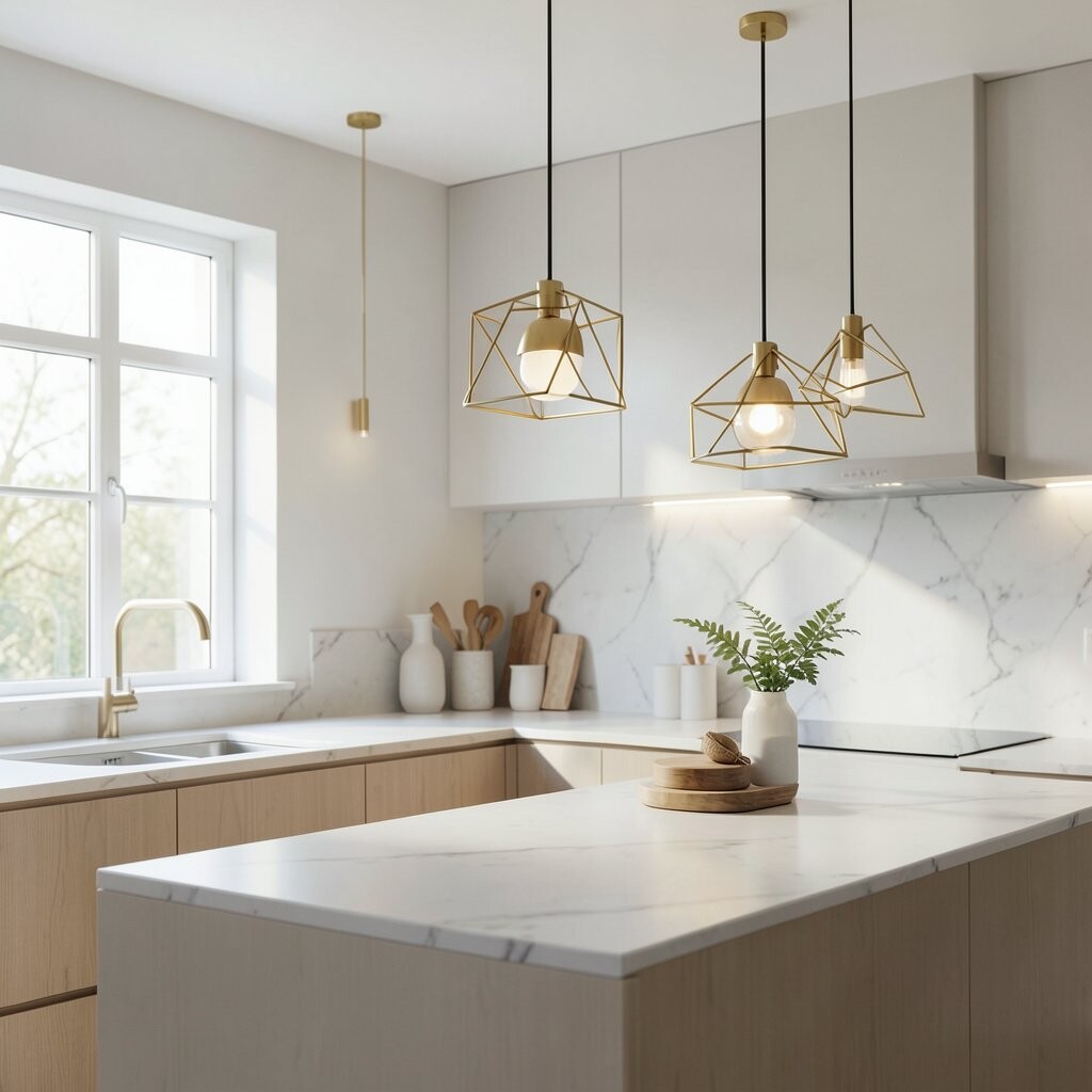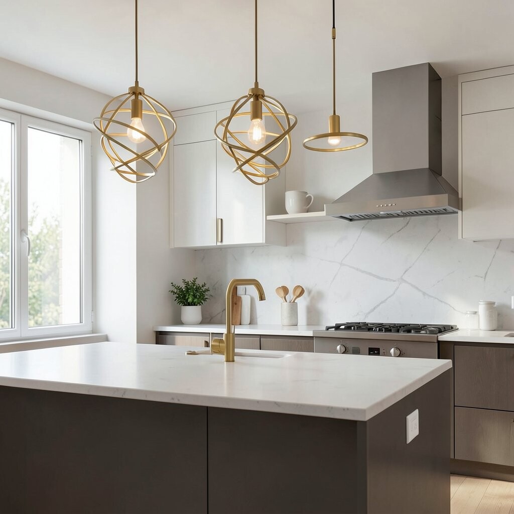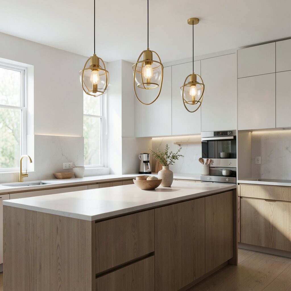 Gold cage pendants are a trendy choice for contemporary kitchens. Their open design creates interesting shadows, adding depth to your space. These pendants are perfect for making a bold statement.