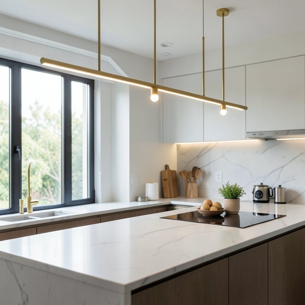 Their linear design adds a touch of sophistication and can make your kitchen appear larger. Opt for dimmable versions to adjust the mood according to the occasion. They’re an excellent choice for those looking to balance form and function.