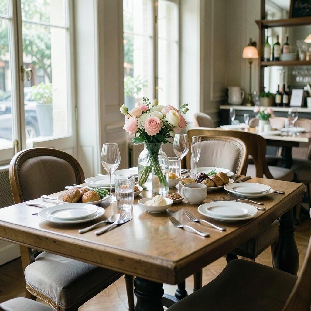 Channel the charm of a Parisian café with this theme. Use checkered tablecloths and simple floral arrangements. Serve croissants and café au lait.