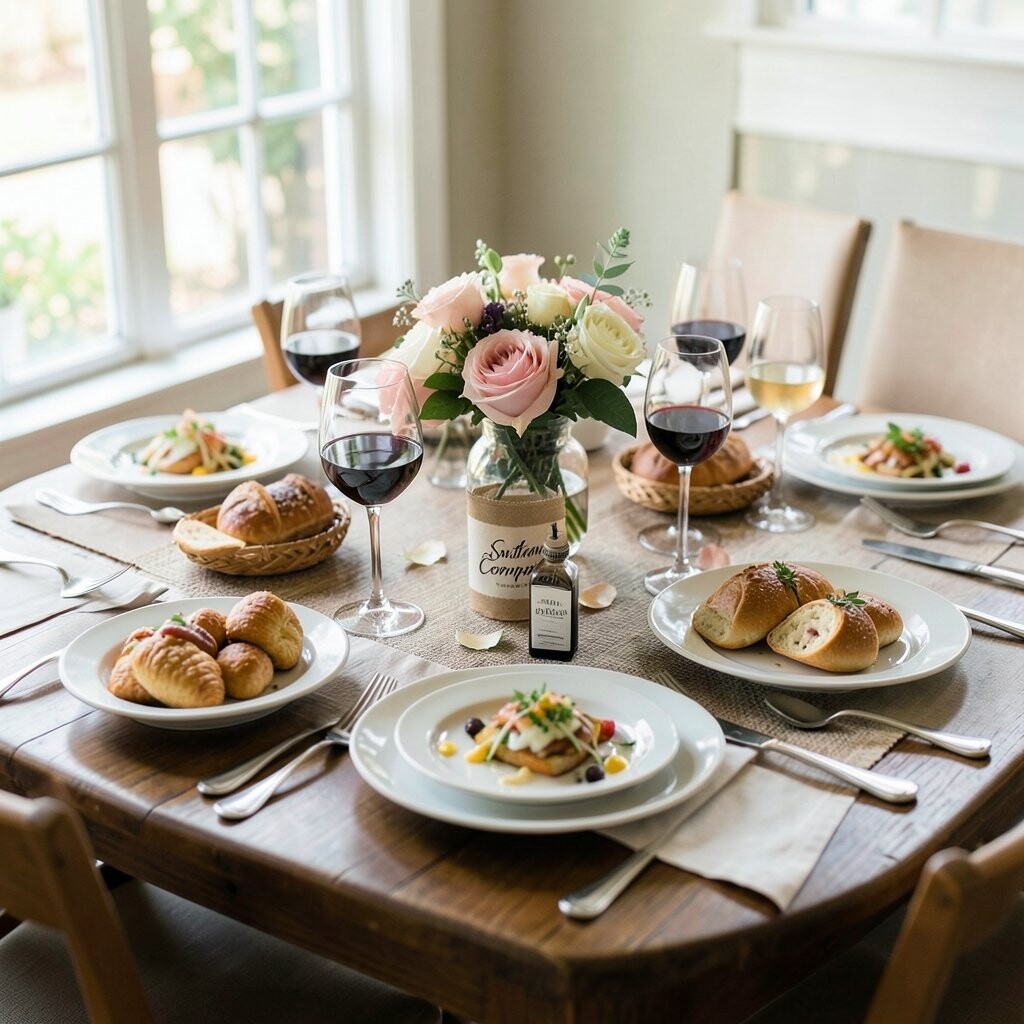 This setup is luxurious yet inviting. It’s great for evening brunches that linger into the night. Use crystal glassware to enhance the glam factor.
