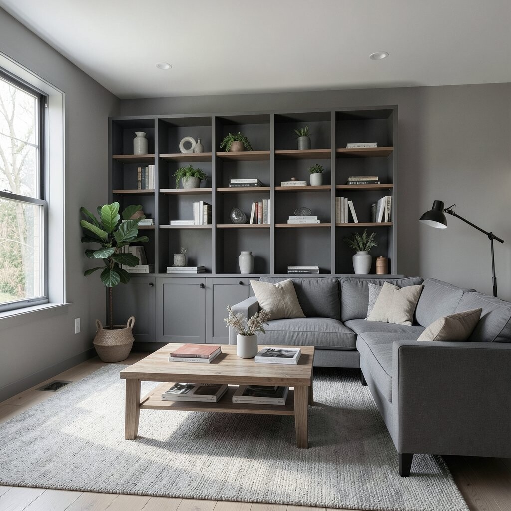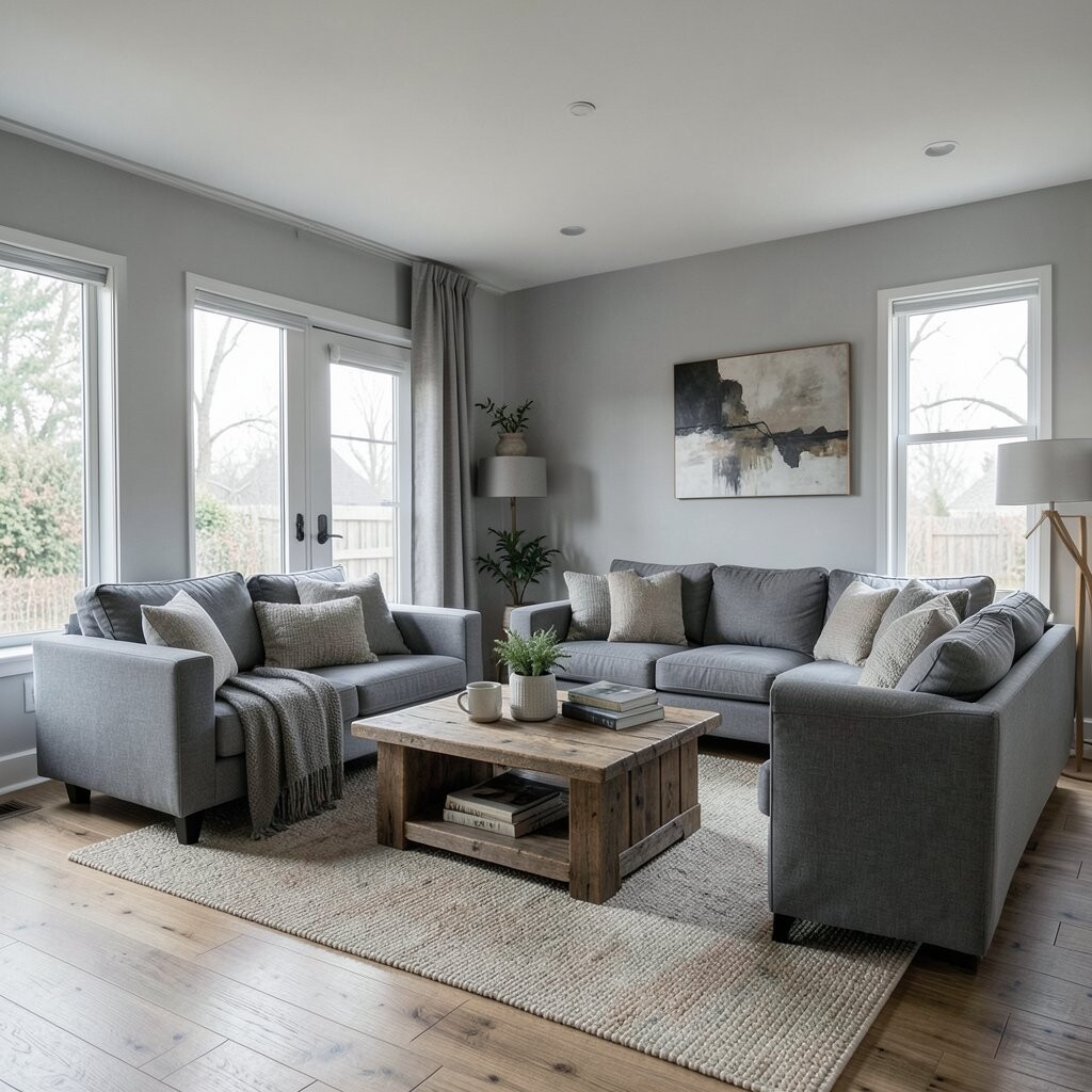 Incorporating rustic wood elements can soften the coolness of gray. Think wooden beams, furniture, or accent pieces.