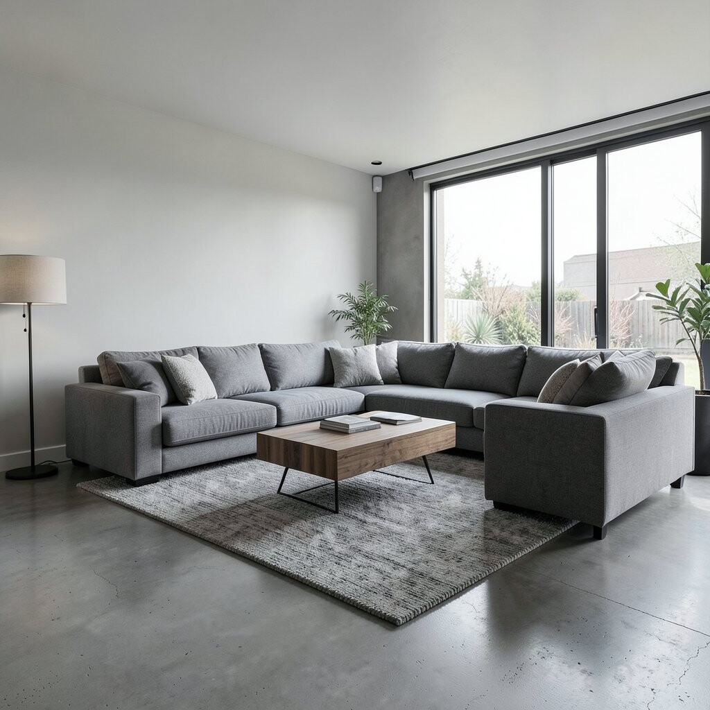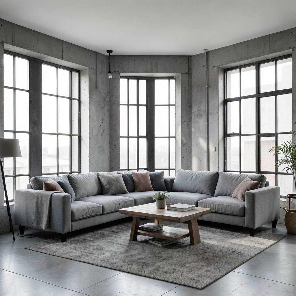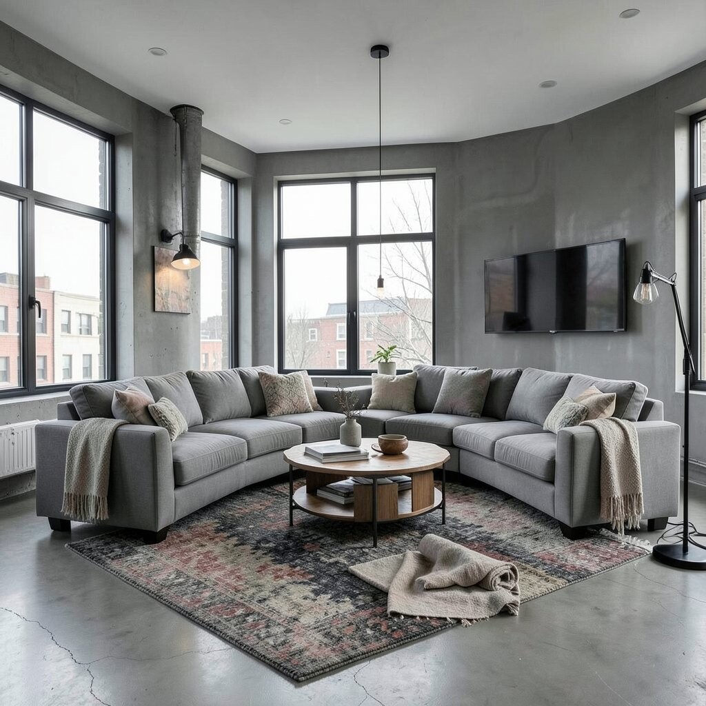 An industrial-style rug can anchor your living room and add comfort underfoot. Choose patterns that mimic concrete or geometric designs.