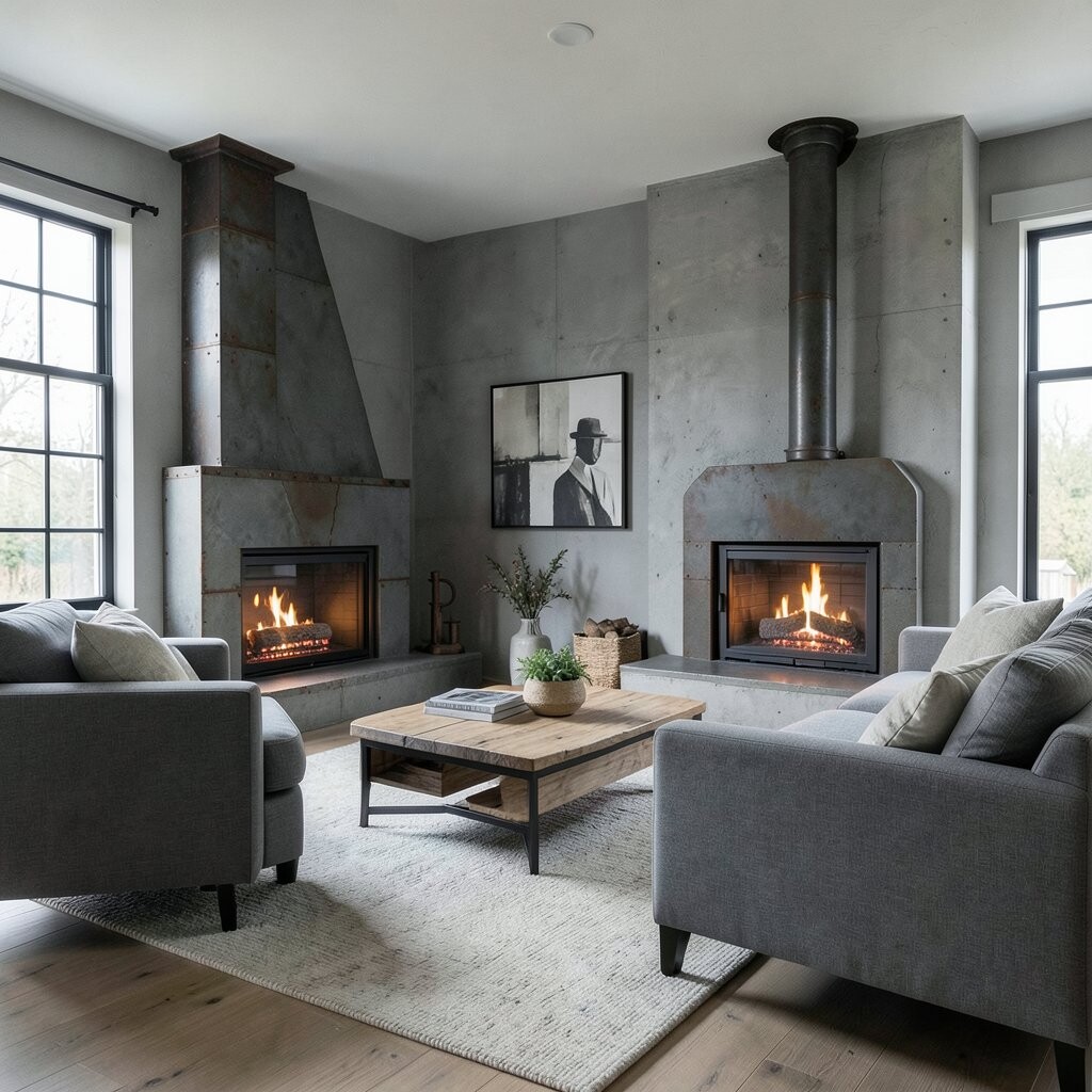 An industrial-style fireplace can be a stunning focal point. Look for designs with metal or stone finishes.