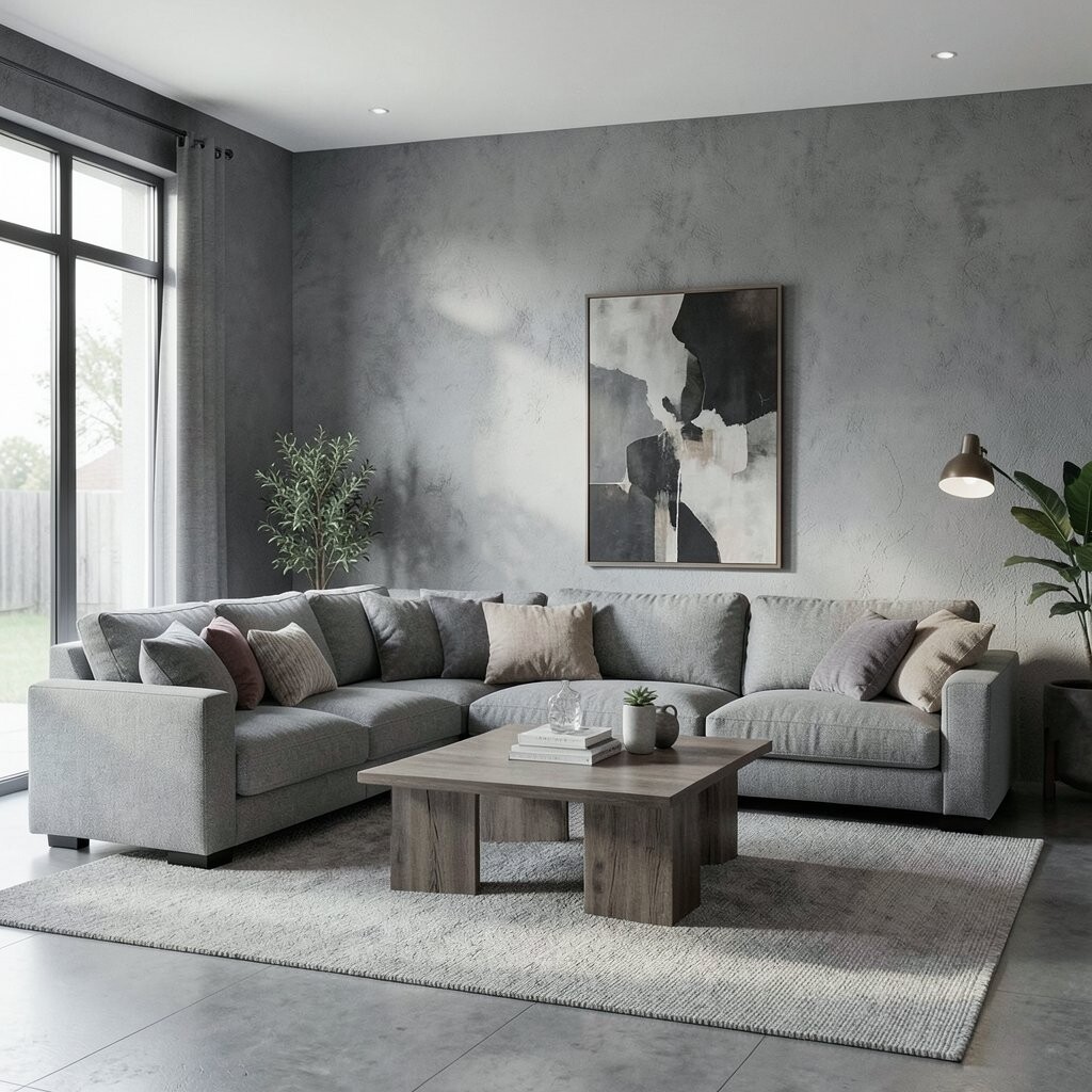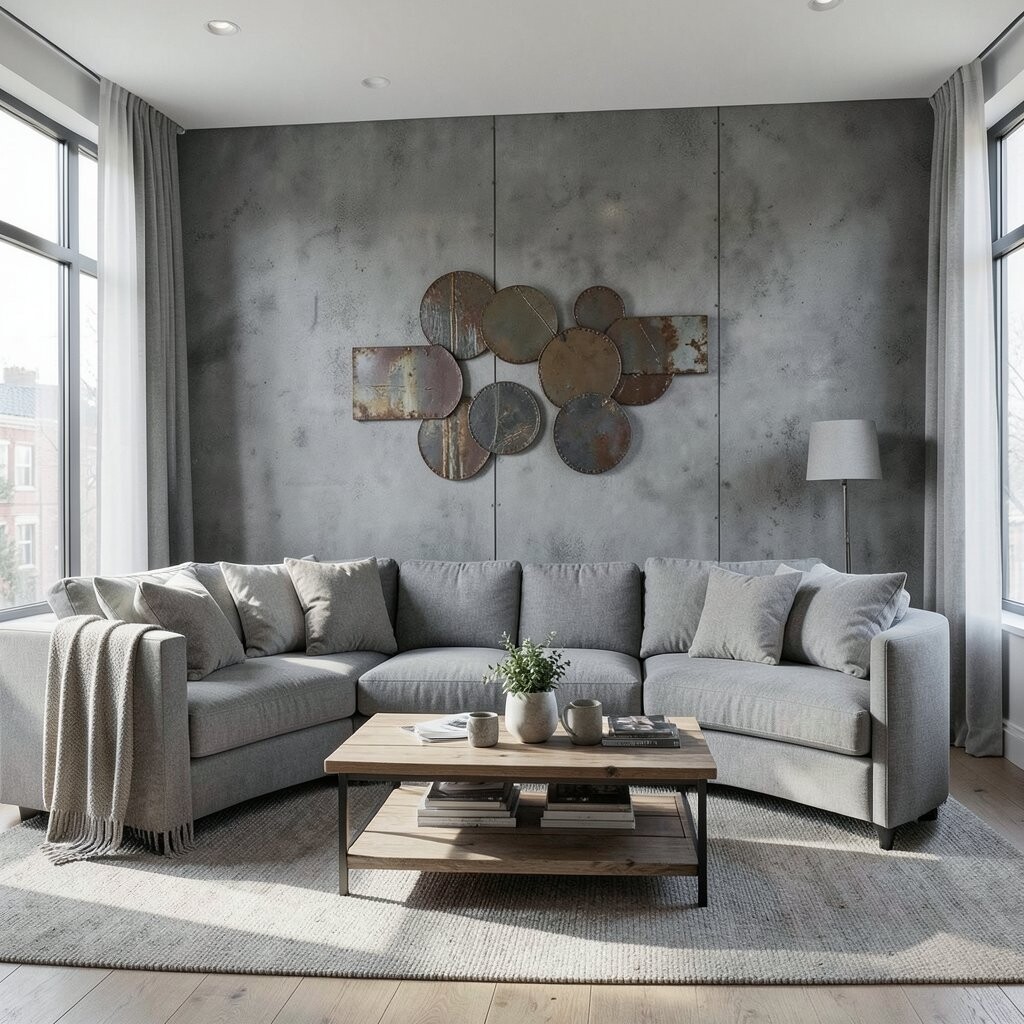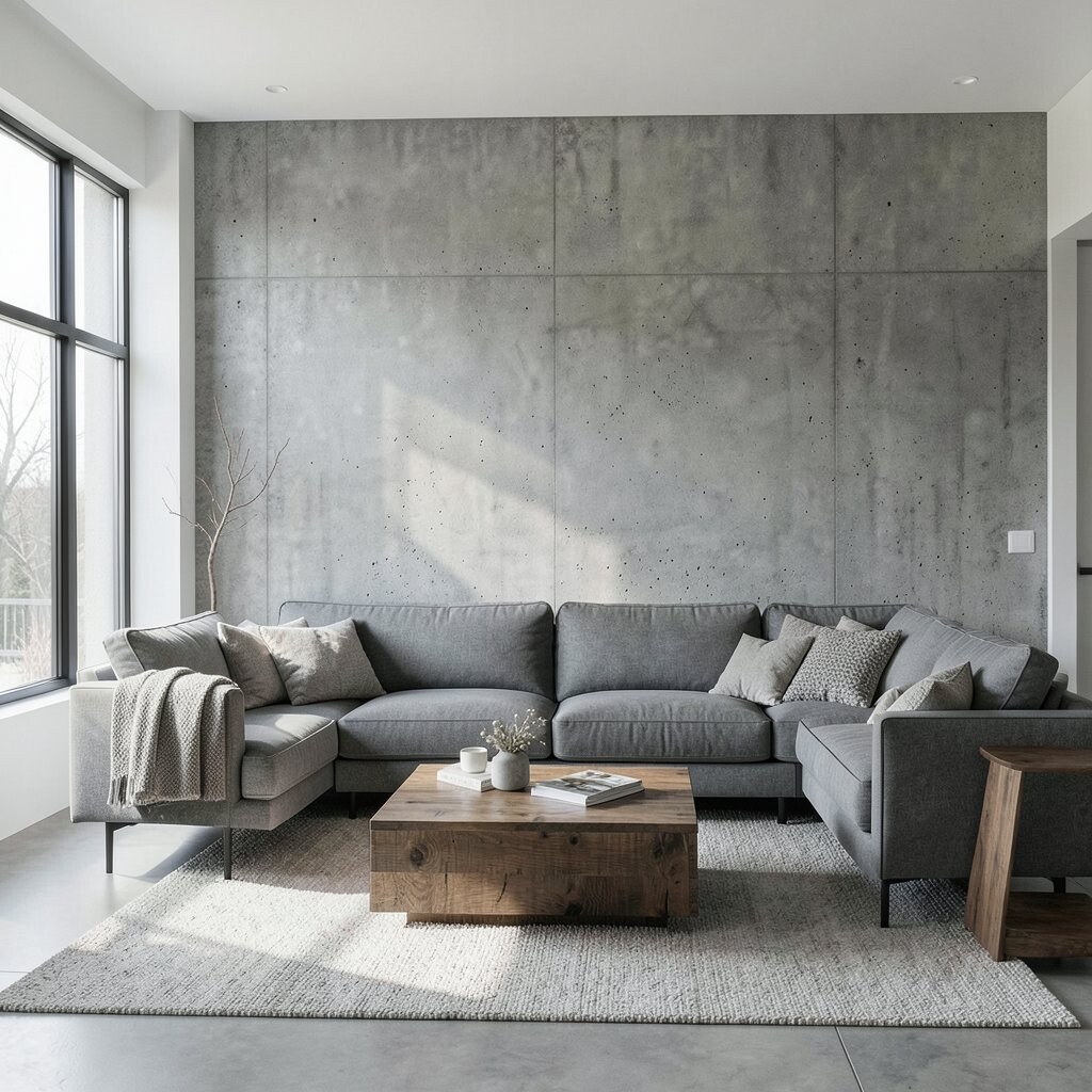 A concrete accent wall can be a bold statement in your living room. It adds texture and a modern edge.