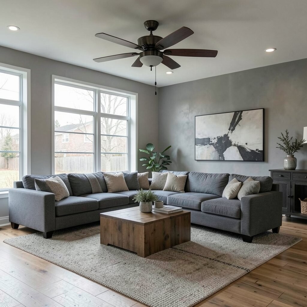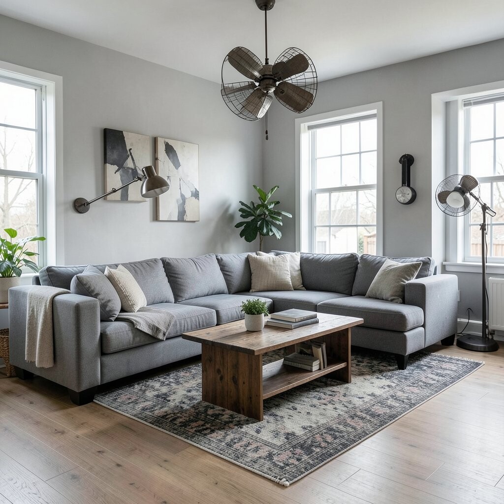 Ceiling fans with an industrial design can add both style and functionality to your living room. Opt for metal blades and exposed mechanics.