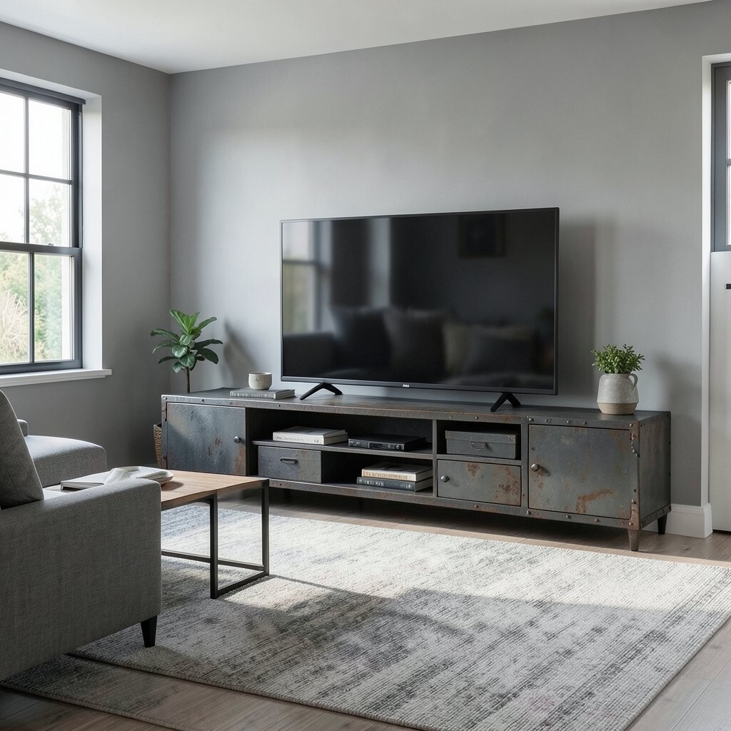 An industrial TV stand can be both stylish and functional. Look for designs with metal and wood elements to complement your theme.