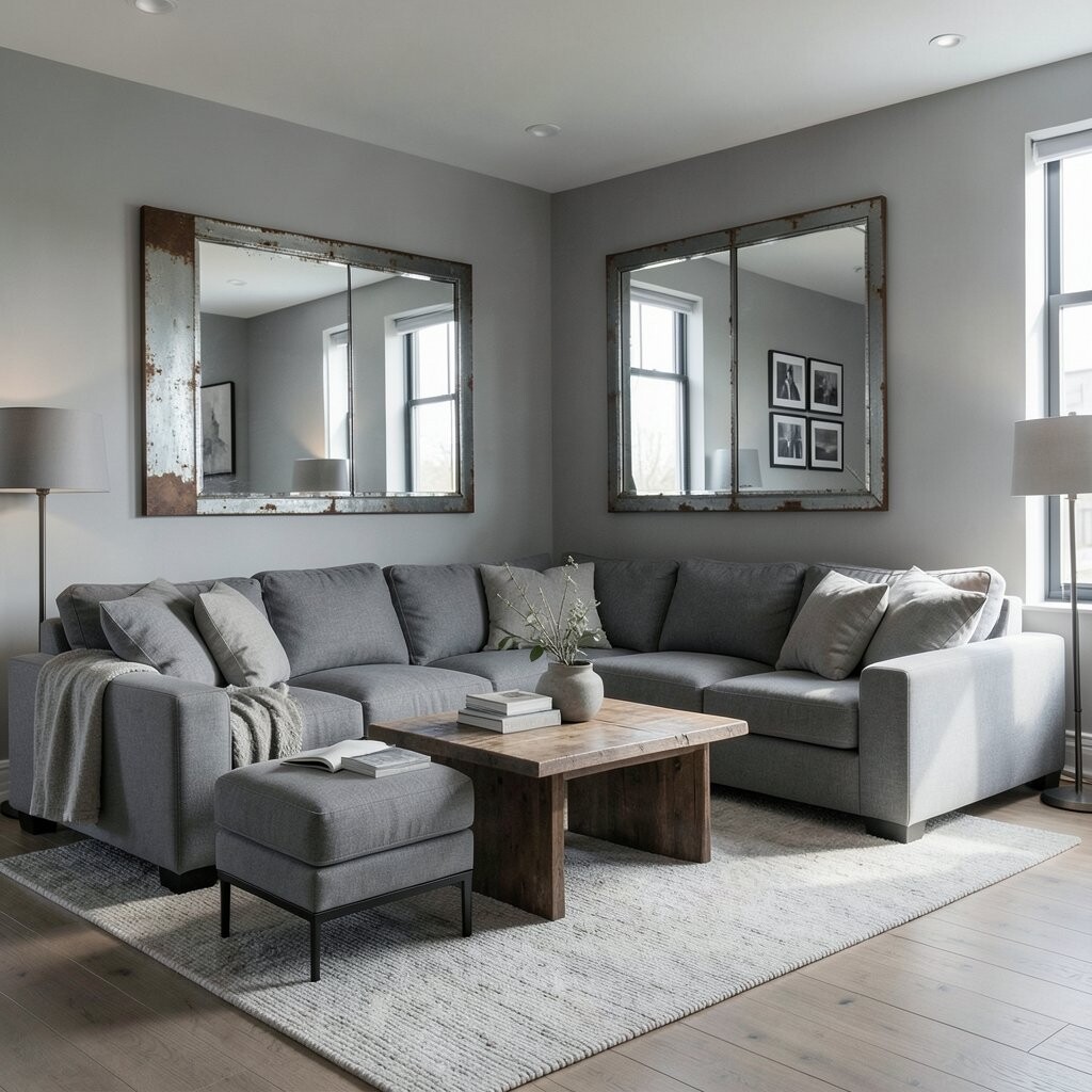 Mirrors with industrial frames can make your living room feel larger and brighter. Choose designs with metal or rustic wood frames.