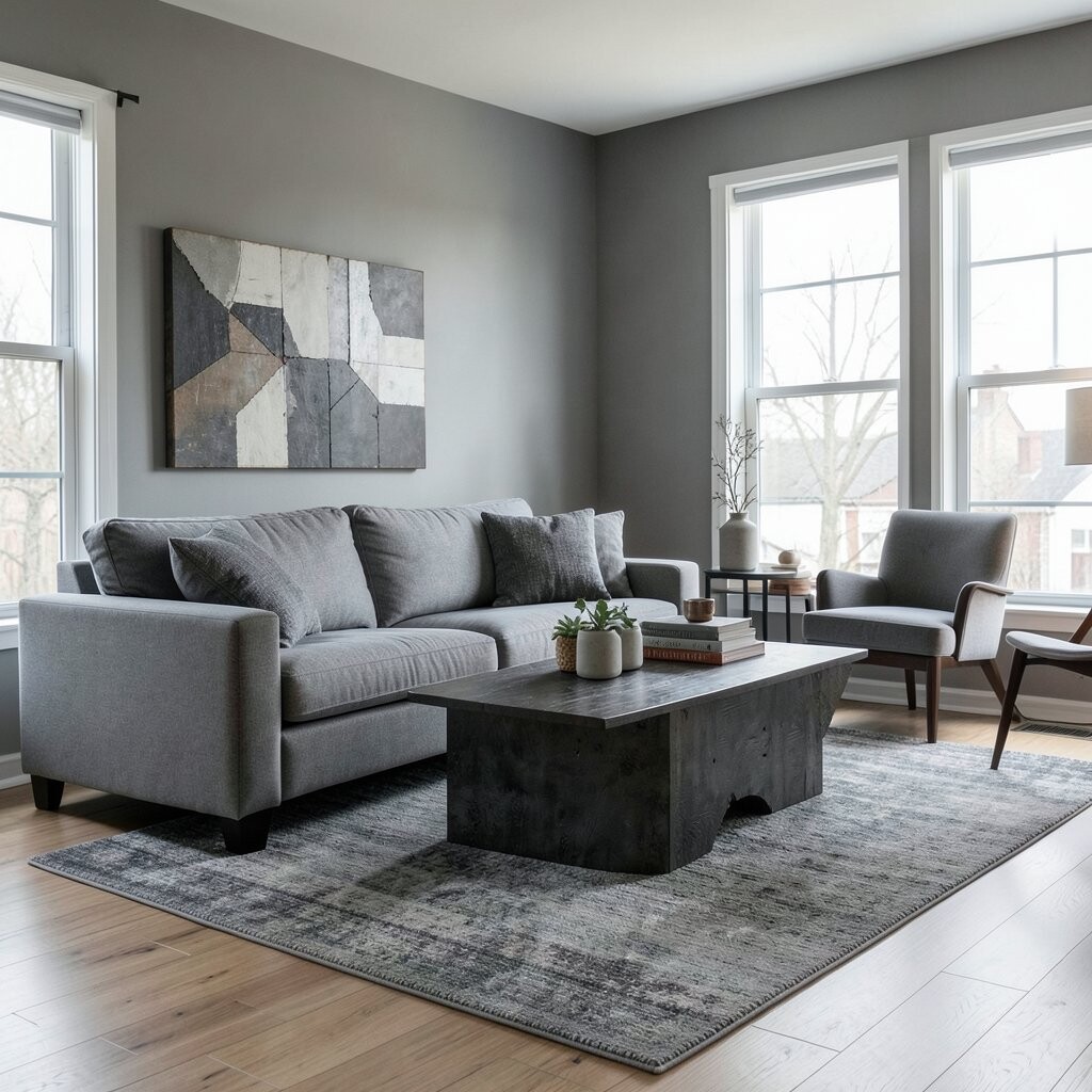 Gray industrial area rugs can tie your room together and add comfort. Look for designs with simple patterns or textures.