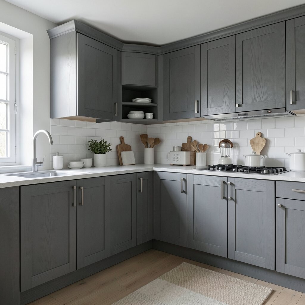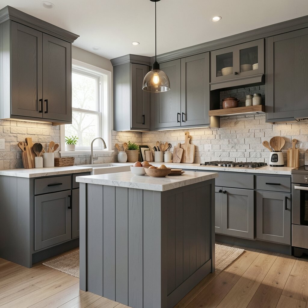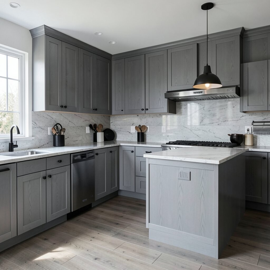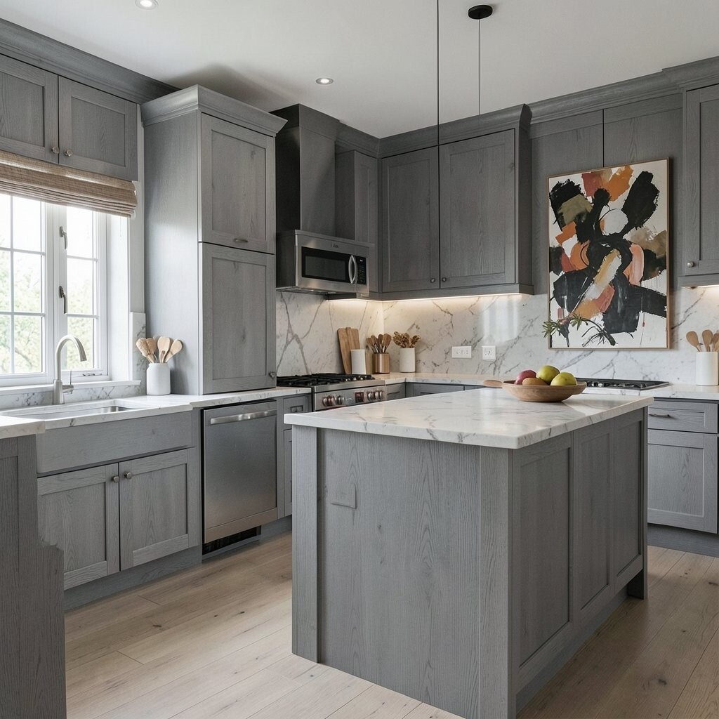 For a sleek and modern kitchen, consider using gray wood panels. They create a streamlined appearance that feels fresh and contemporary.