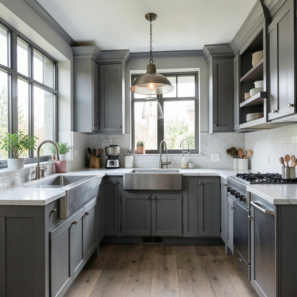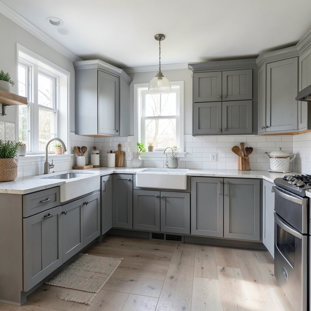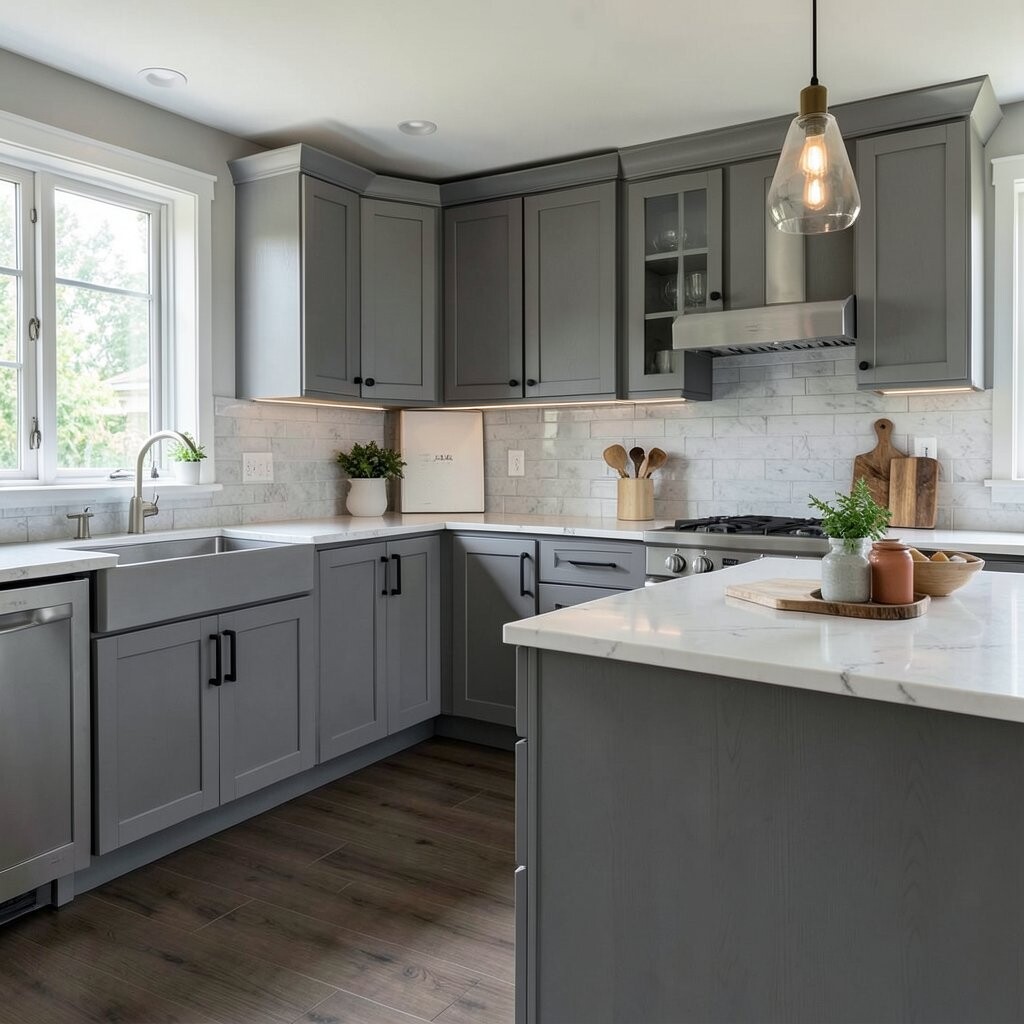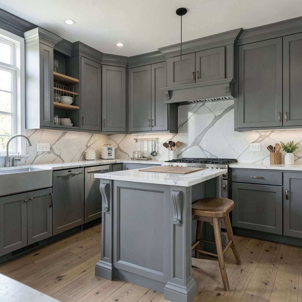 For a sleek and modern kitchen, consider using gray wood panels. They create a streamlined appearance that feels fresh and contemporary.