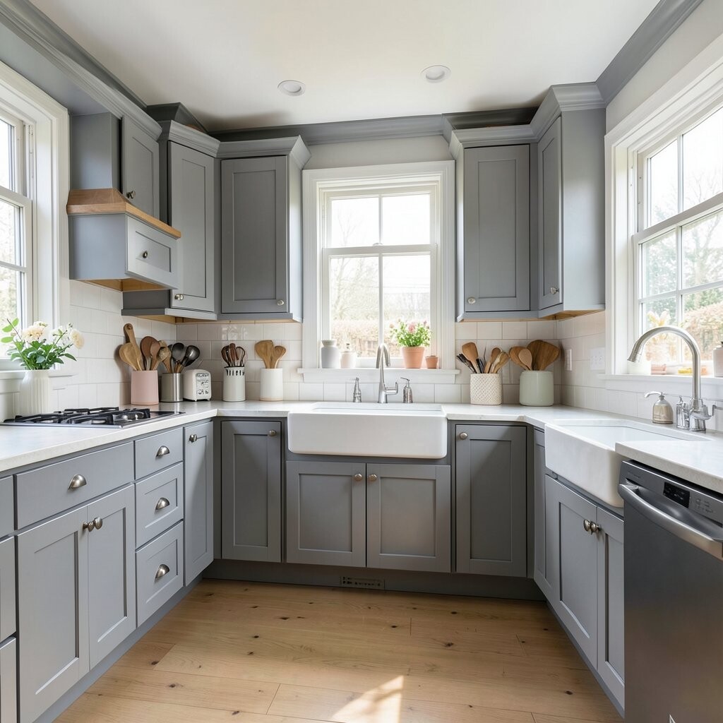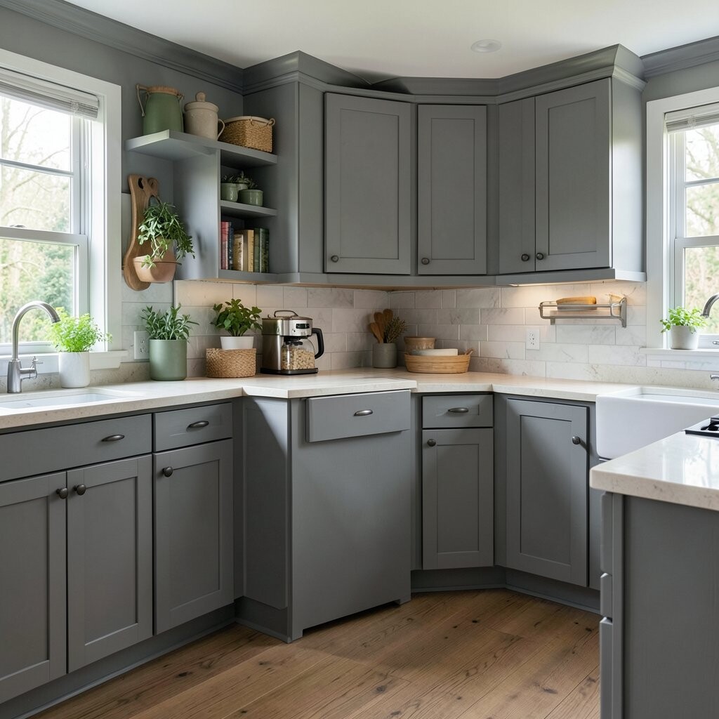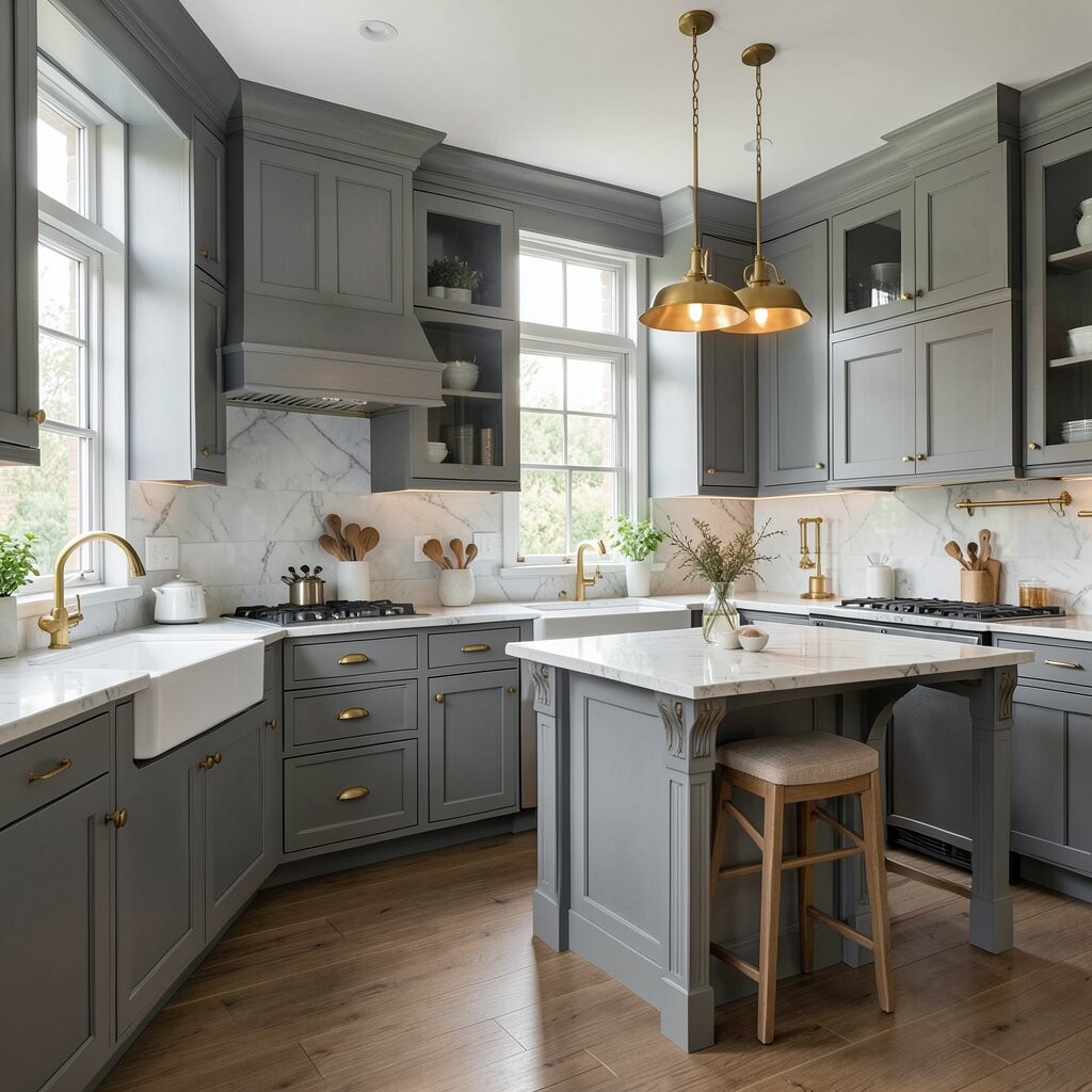 Gray wooden cabinets can give your kitchen a vintage charm that’s just irresistible. The soft gray hue pairs beautifully with retro-style appliances and accessories.